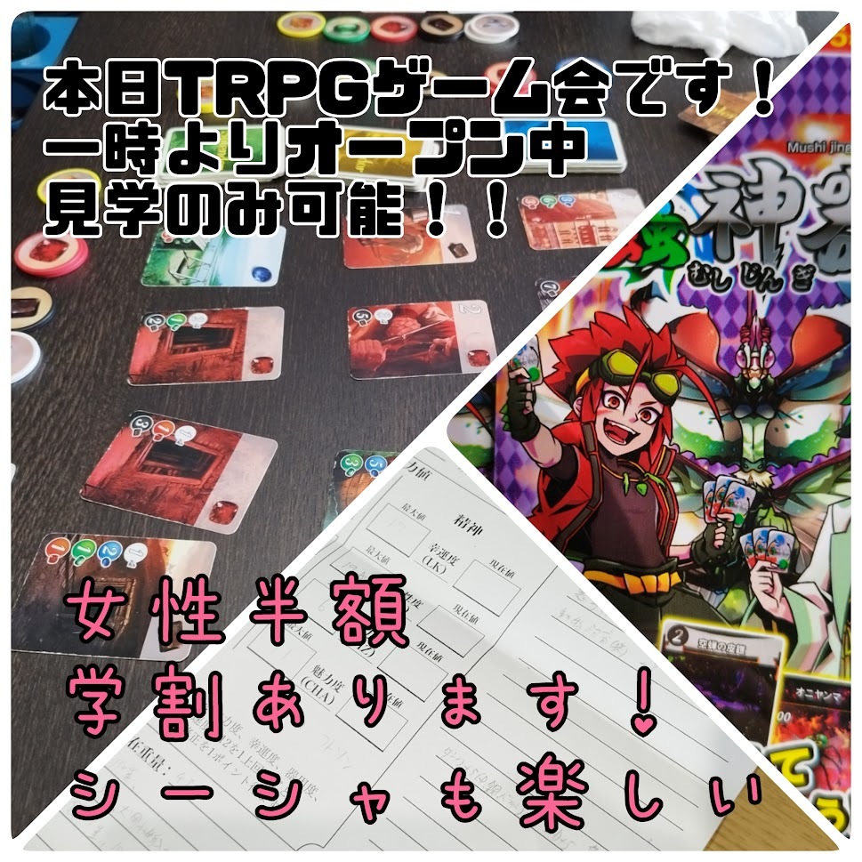 【OPEN】本日TRPGゲーム会、見学可能!シーシャ体験も好評稼働中