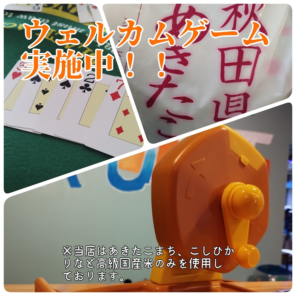 【OPEN】13時よりOPEN。今月のウェルカムゲーム。当店は高級国産米のみ利用しております