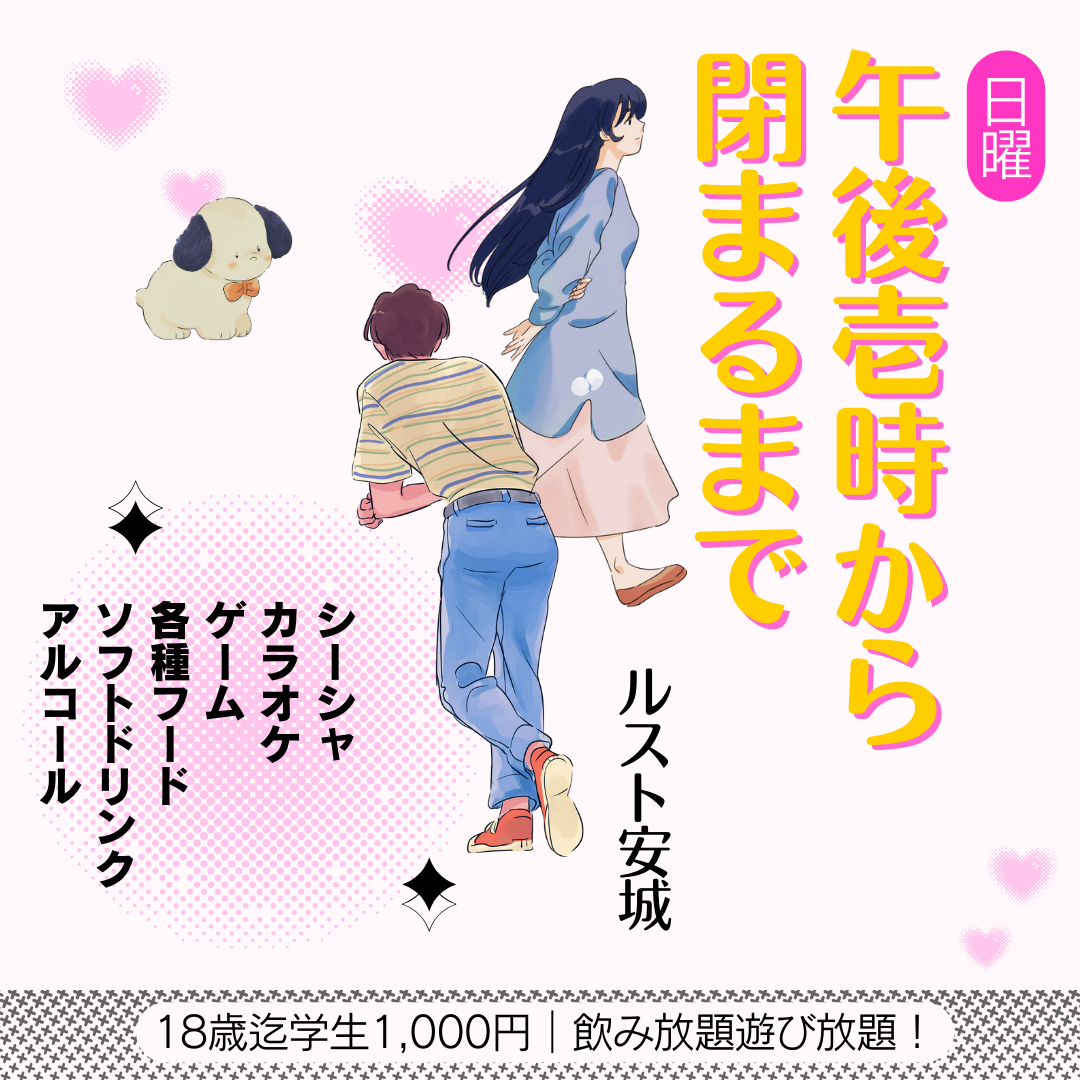 - 2日前2025年12月04日 10時35分頃【イベント】いつでもオールナイト実施中!🌙🔥【RUSTは12月いつでもオールナイトOK!】🔥🌙「終電気にせず遊びたい!」「朝まで語りたい!」そんな声にお応えして…RUSTは12月中いつでもオールナイトイベント対応しております!🎮💨ゲームで盛り上がるも、シーシャでゆったりチルるも、仲間とボドゲ大会を開くのも大歓迎✨貸切・団体利用も相談...5ページビュー