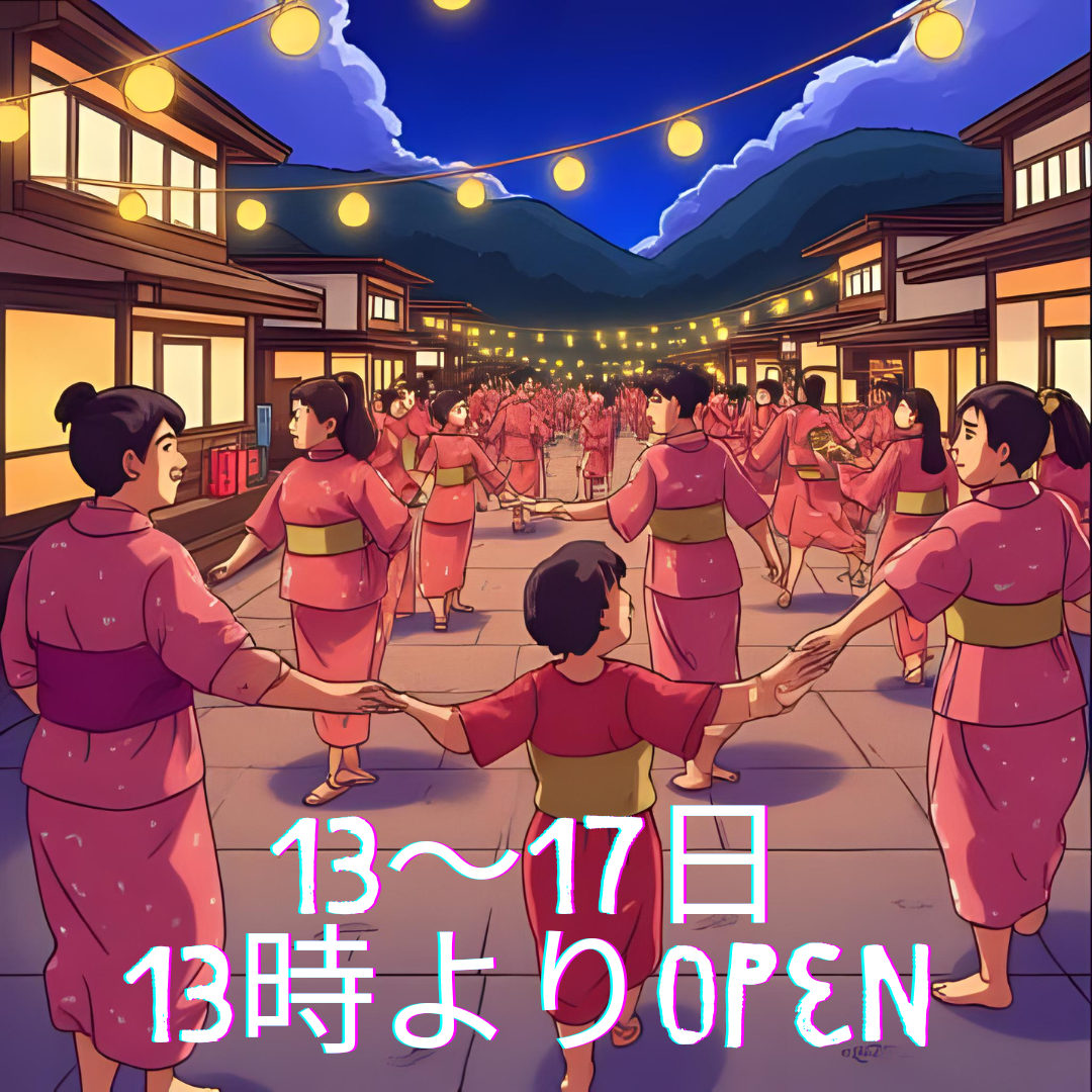 お盆営業、13日~17日まで毎日13時からOPEN!!