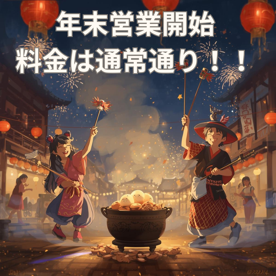 【年末営業】本日より年末営業開始、休まず毎日やってます!!