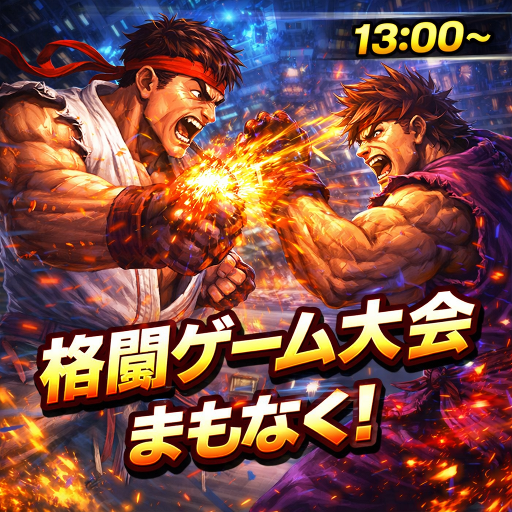 - 約17時間前2026年01月25日 03時30分頃開催!13時から練習スタート|格闘ゲーム大会 in ギルド酒場るすと明日はギルド酒場るすとで、格闘ゲーム大会を開催します。開始は13時から練習スタート。参加者が集まり次第、その流れで大会に入るスタイルです。本イベントは、ガチ勢だけの大会ではありません。初心者、久しぶりにゲームを触る人、観戦だけしてみたい人も大歓迎。その場の雰囲気を楽しみながら、自然に盛り上がる...1ページビュー