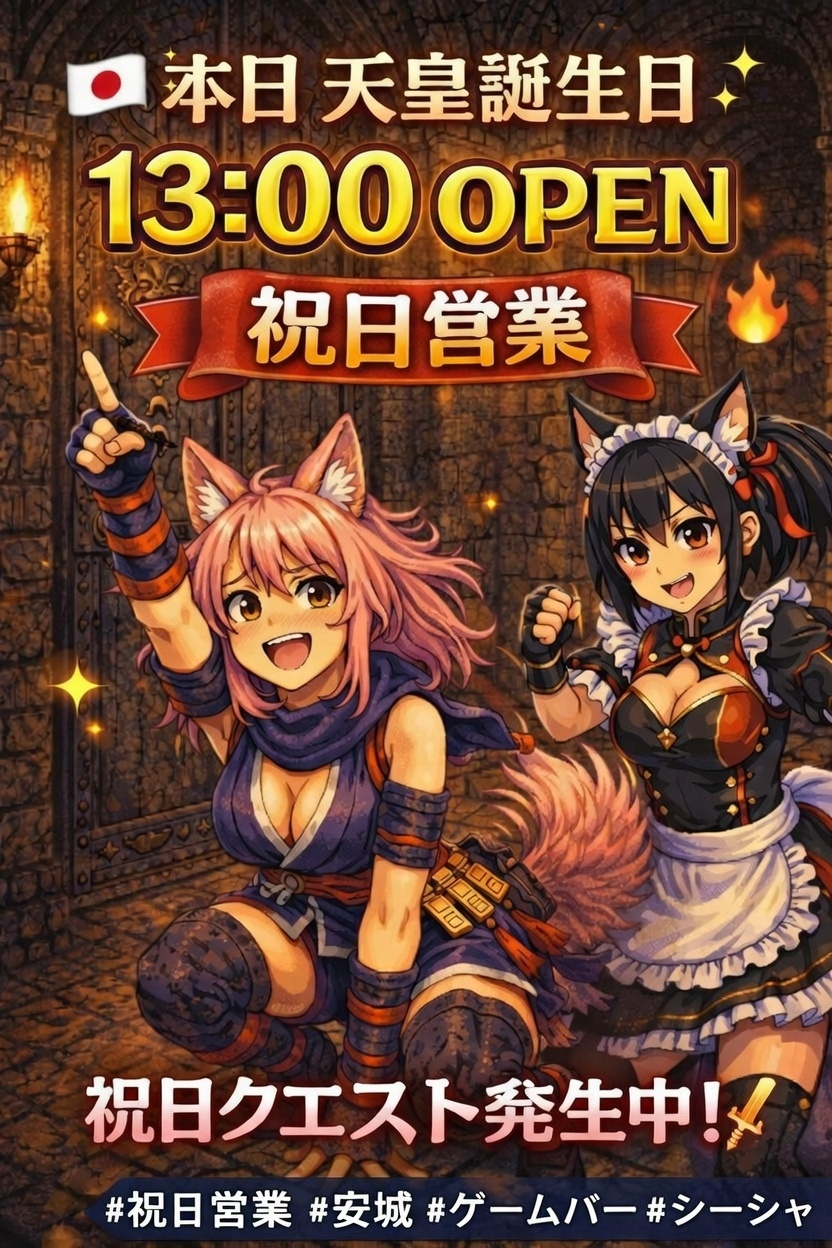 🎌天皇誕生日は13時OPEN!祝日営業のお知らせ【ギルド酒場るすと|安城】