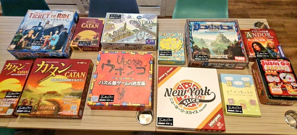 ボードゲームはまだ数々少ないですがこんなラインナップです! 続々増やしてますので、増え次第更新致します。