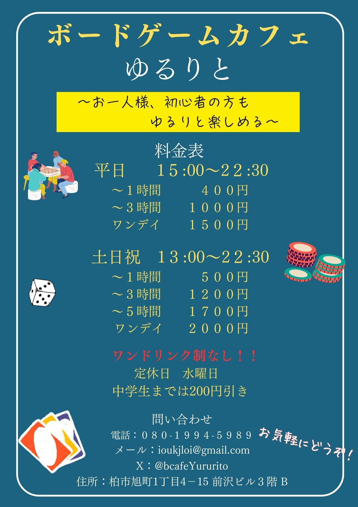 ボードゲーム初めての方、お一人様に優しく、お客様にごゆるりと遊んでいただけるボードゲームカフェです。料金もお安くなっております。