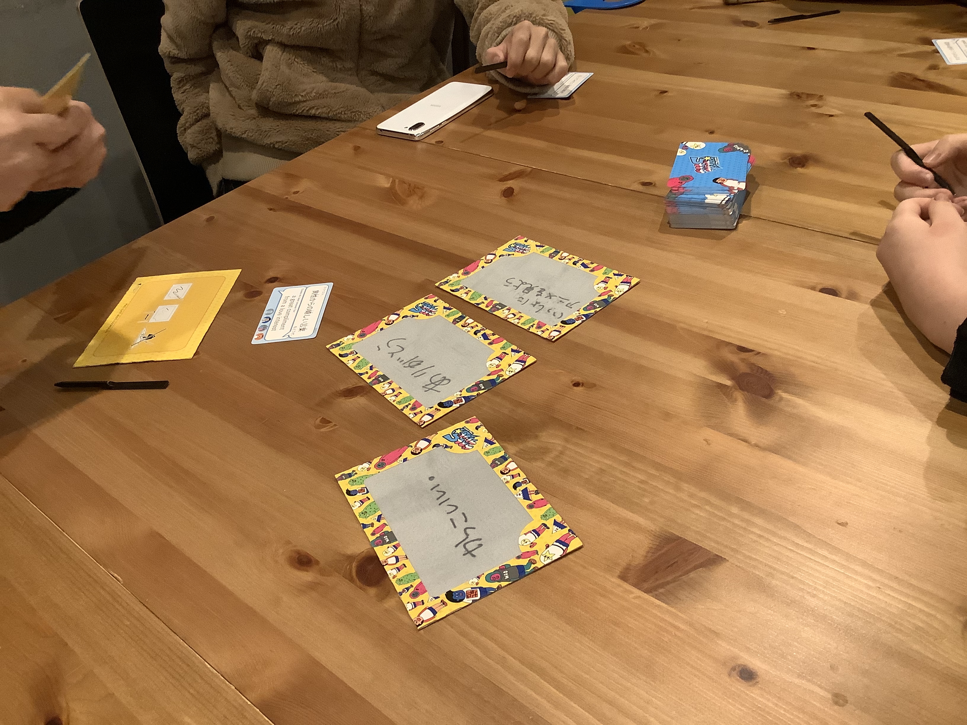 誰が答えたかわからないようにシャッフルして、一位の回答を発表、回答した人に1ポイント入ります。