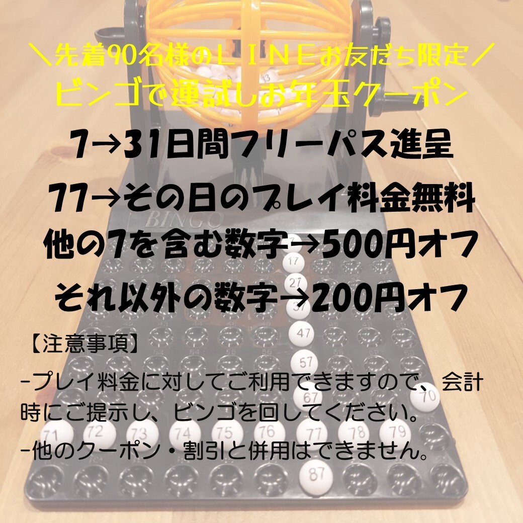 【ビンゴで運試しクーポン】『7』が出れば、なんと10000円の31日間フリーパスを進呈!最低でも200円オフです。公式LINEお友だち先着90名様限定ですので、お早めにご利用ください!