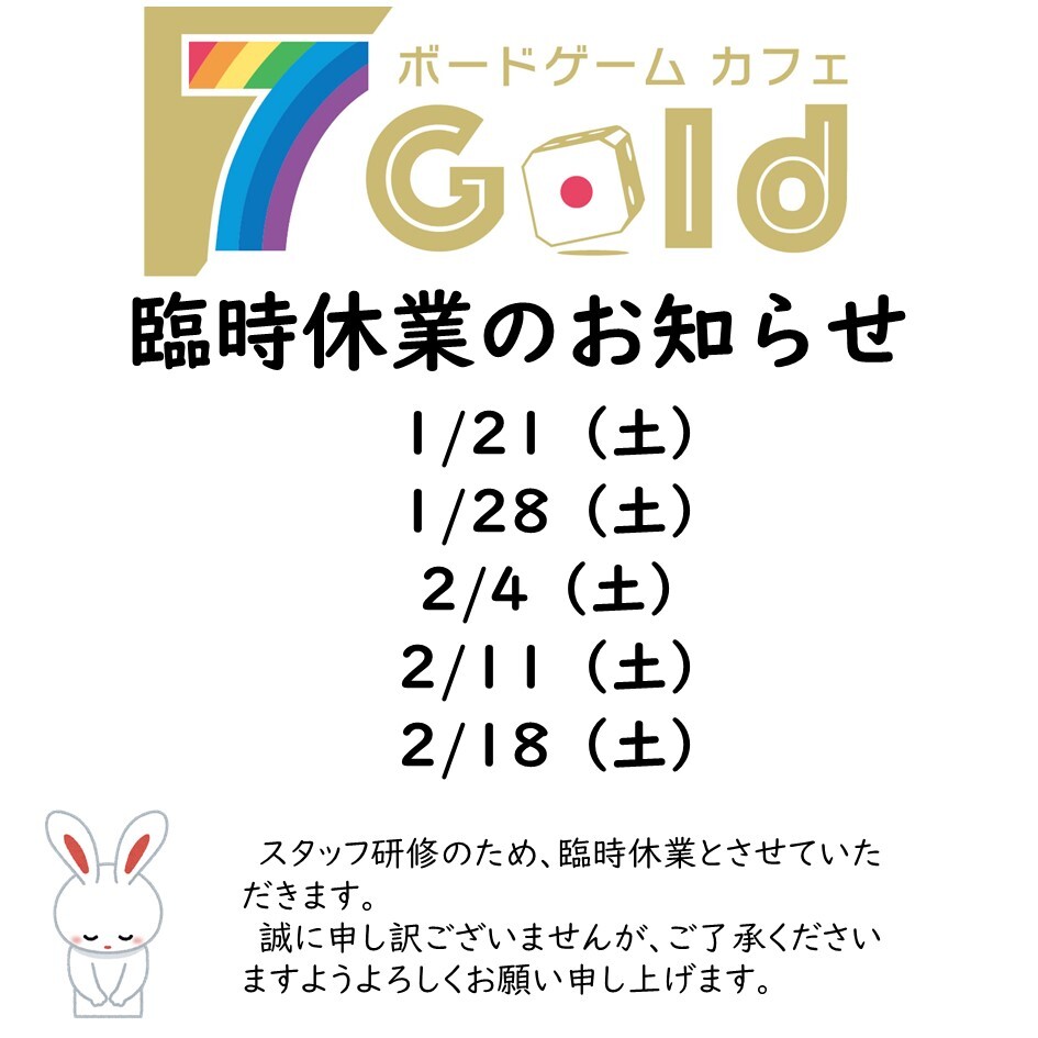 【1/21等】臨時休業のお知らせ