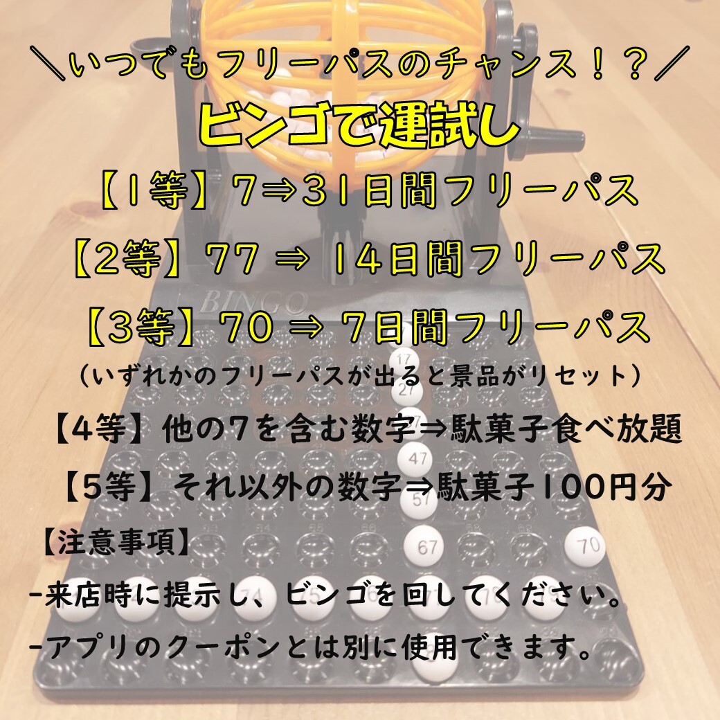 【いつでもフリーパスのチャンス!?ビンゴで運試し】