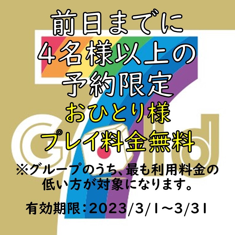 【前日までに4名様以上の予約限定】おひとり様プレイ料金無料