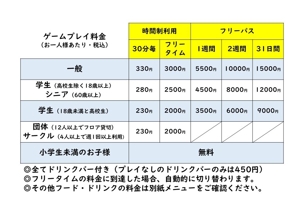 日頃よりたくさんご来店くださり、当店を楽しい空間にしていただいているフリーパスをご購入いただいている皆さまに対しては、特に大きく値上げしてしまう形となってしまい、誠に申し訳ございません。