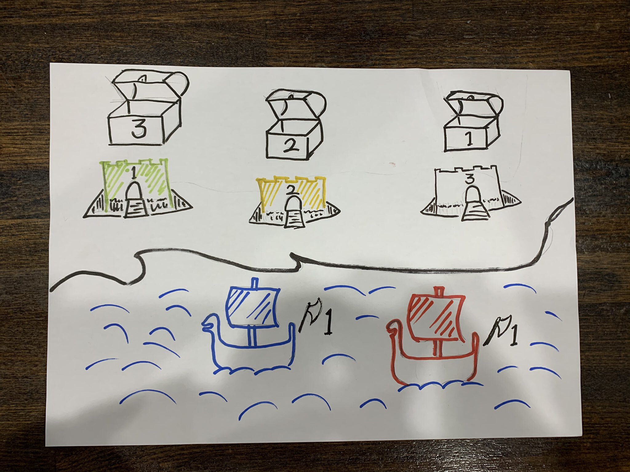 2番目に高い数字の船は、次に数字の低い砦に攻め込みます。船より砦の数字が低かった場合に砦の奥にある宝箱から宝を持ち帰ることができます。