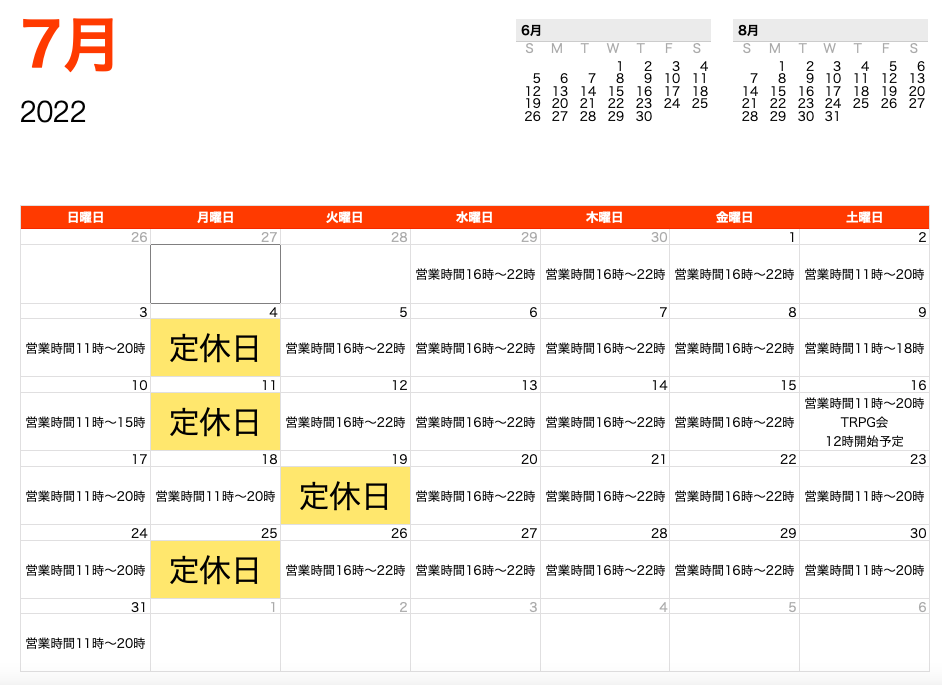 また、今月は16日第三土曜日に恒例のTRPG会を予定いたします