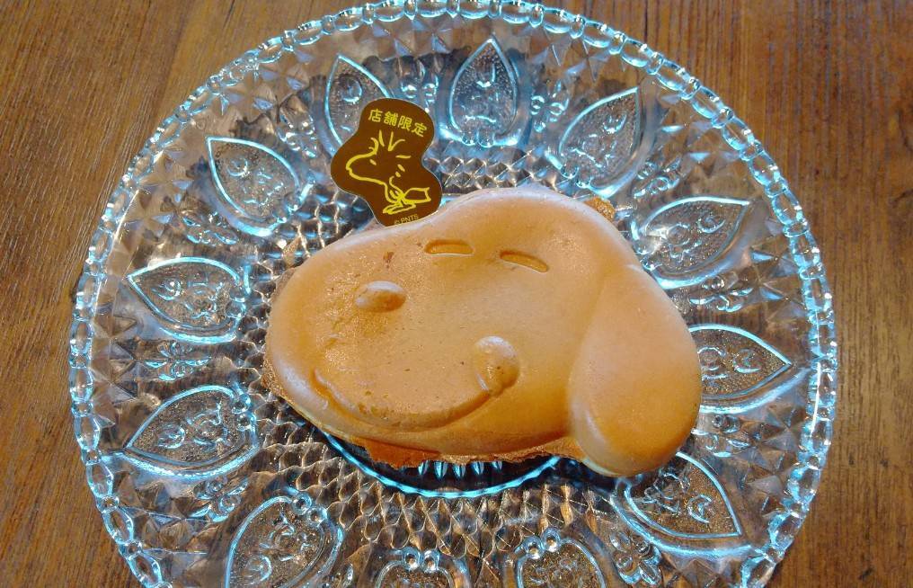 こちらのおすすめテイクアウト商品は、スヌーピーの顔をかたどった「スヌーピー焼き」です。さつま芋あん、小倉あん、カスタードの3種類の味があり、価格は350円です。