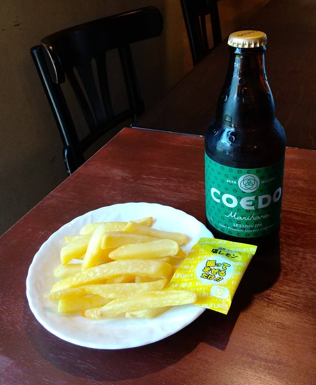 今回ご紹介させていただくのは、当店で販売しているCOEDOビールとふりふりポテトです。