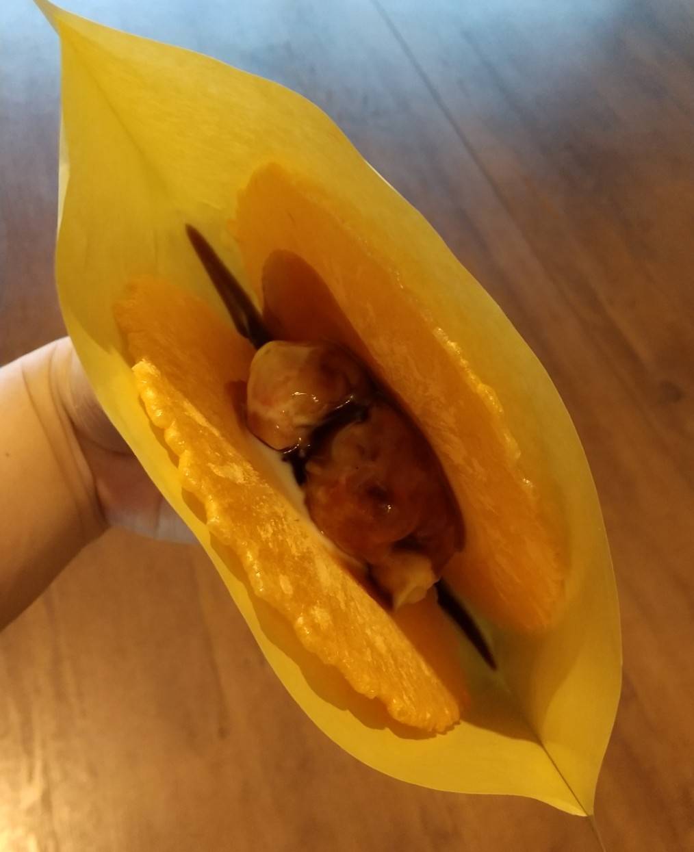 ぎゅっと押しつぶして食べてくださいと出来立ての状態で手渡してもらいました。