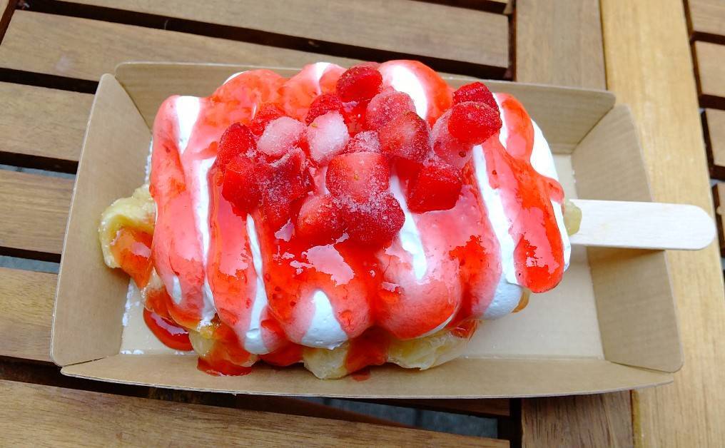 ピザやオレオが人気と伺い、とても迷いましたが、見た目の可愛さに惹かれてストロベリークロッフルにしてみました。