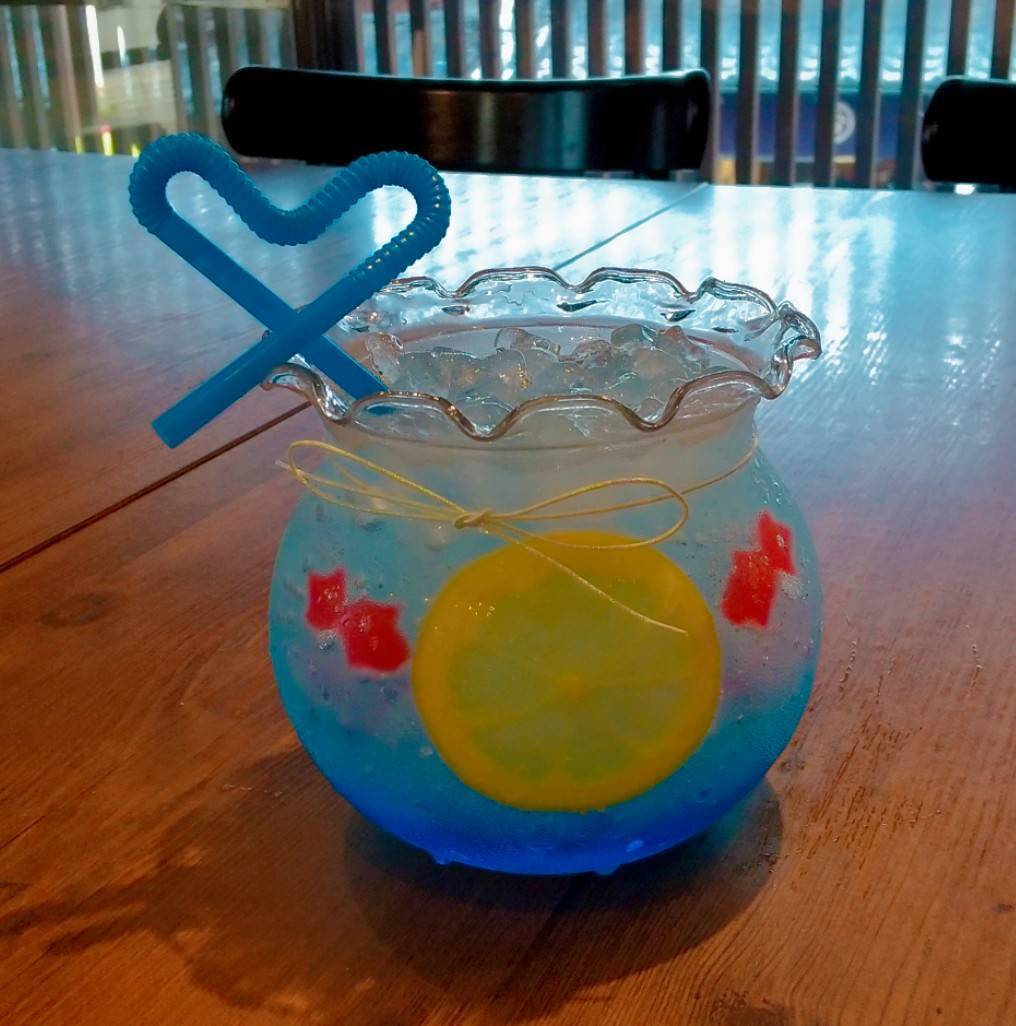 こちらのおすすめは、“金魚鉢のかたちをした容器にソーダ水を注いだドリンク”です。