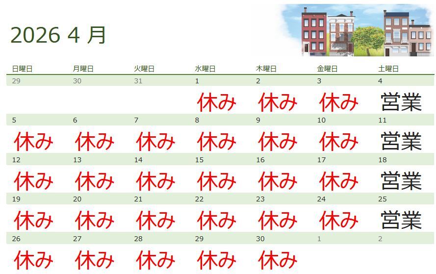 | 定休日 | 不定期 |