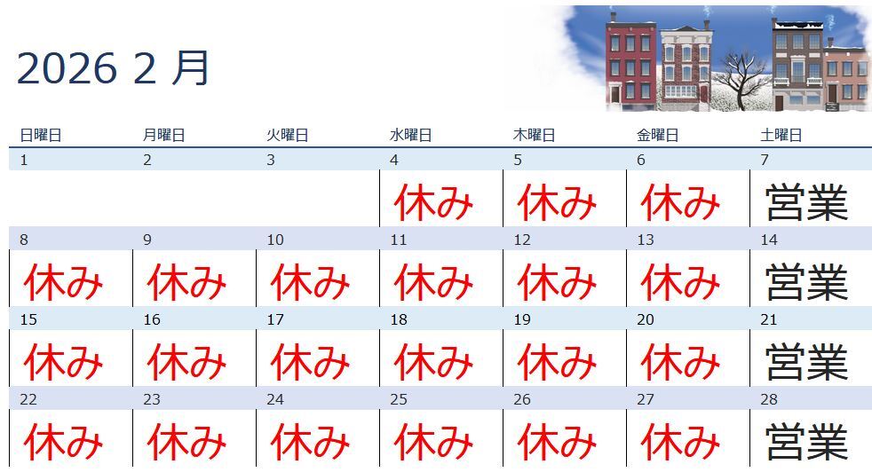 - 7日前2026年02月13日 01時15分頃2月の営業日になります14ページビュー