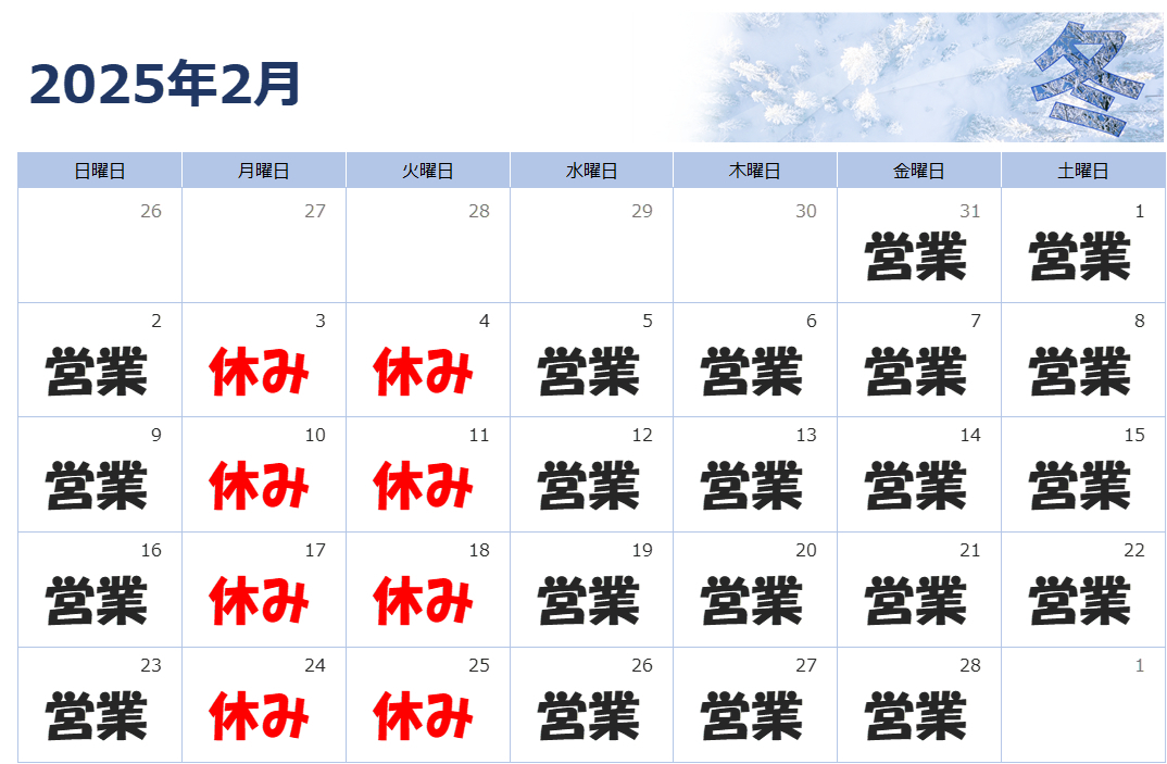- 2ヶ月前2025年10月01日 07時36分頃10月の営業日になります167ページビュー