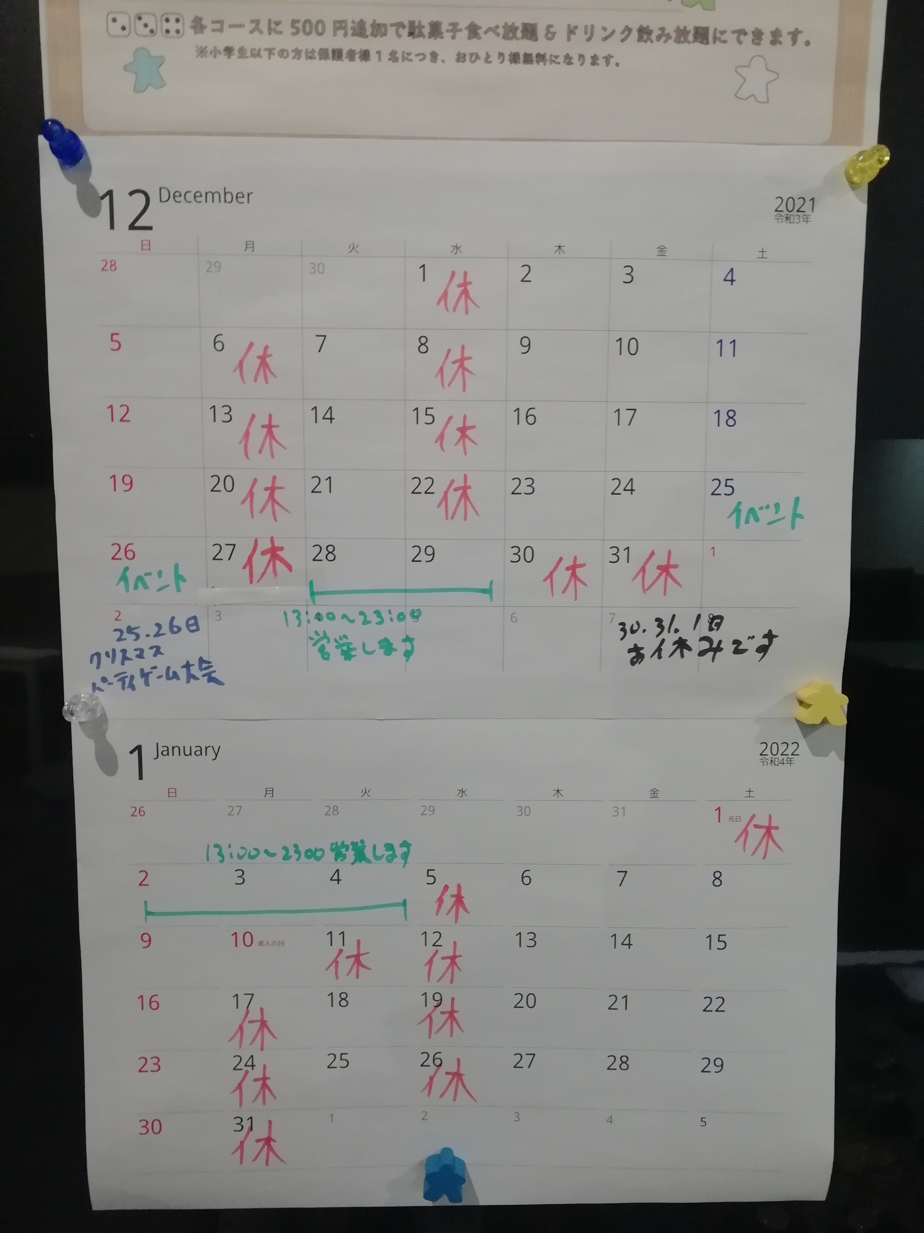 - 2年弱前2024年03月05日 23時10分頃【お知らせ】3月の営業予定【お知らせ】3月の営業予定3月20日(水・祝)13:00~23:00営業いたします3月24日(日) 日曜日ですがお休みします(ゲームマーケットに参加してきます!)3月31日(日)「ふるよに交流会」開催します!3月26日~4月7日13:00~23:00(春休み営業いたします!)289ページビュー