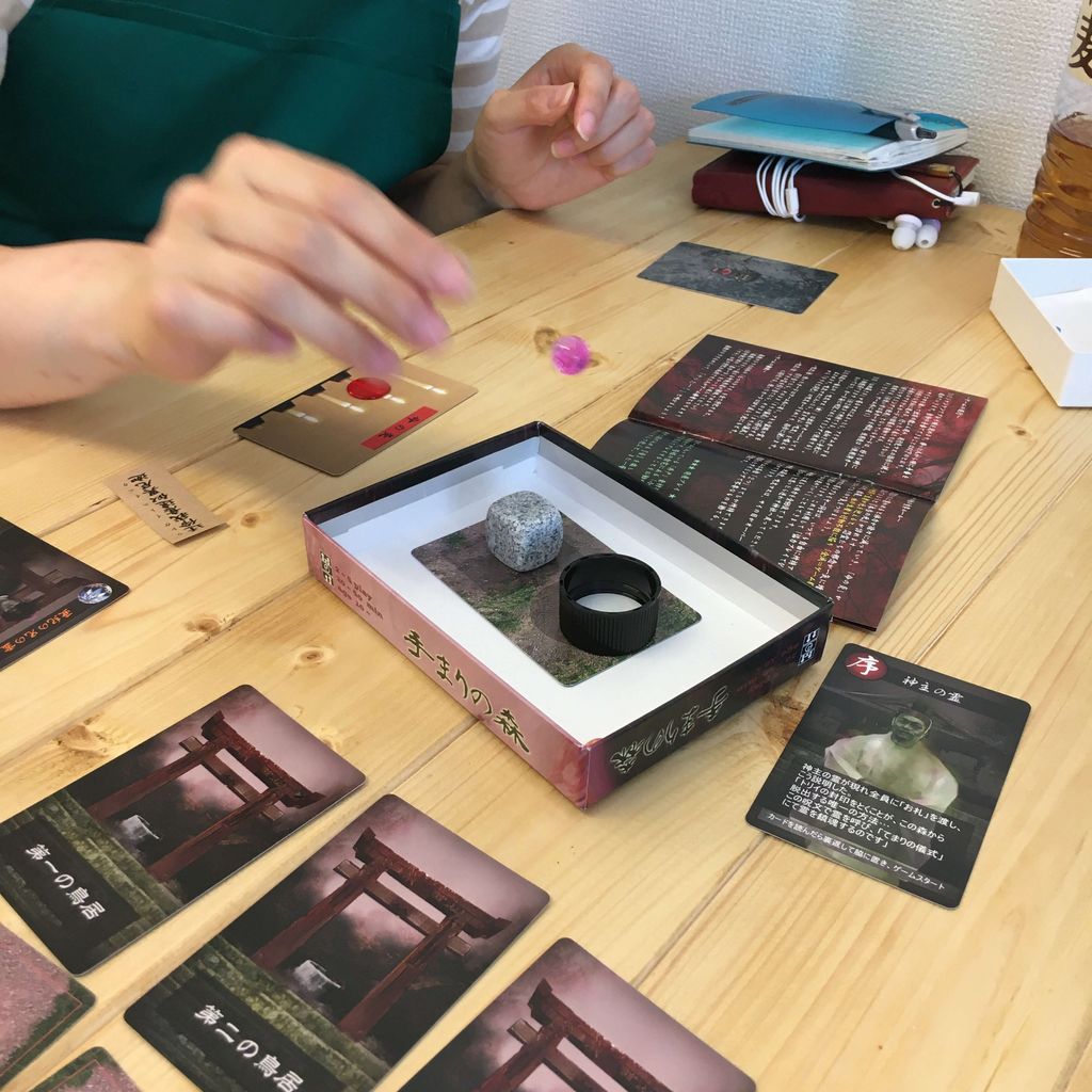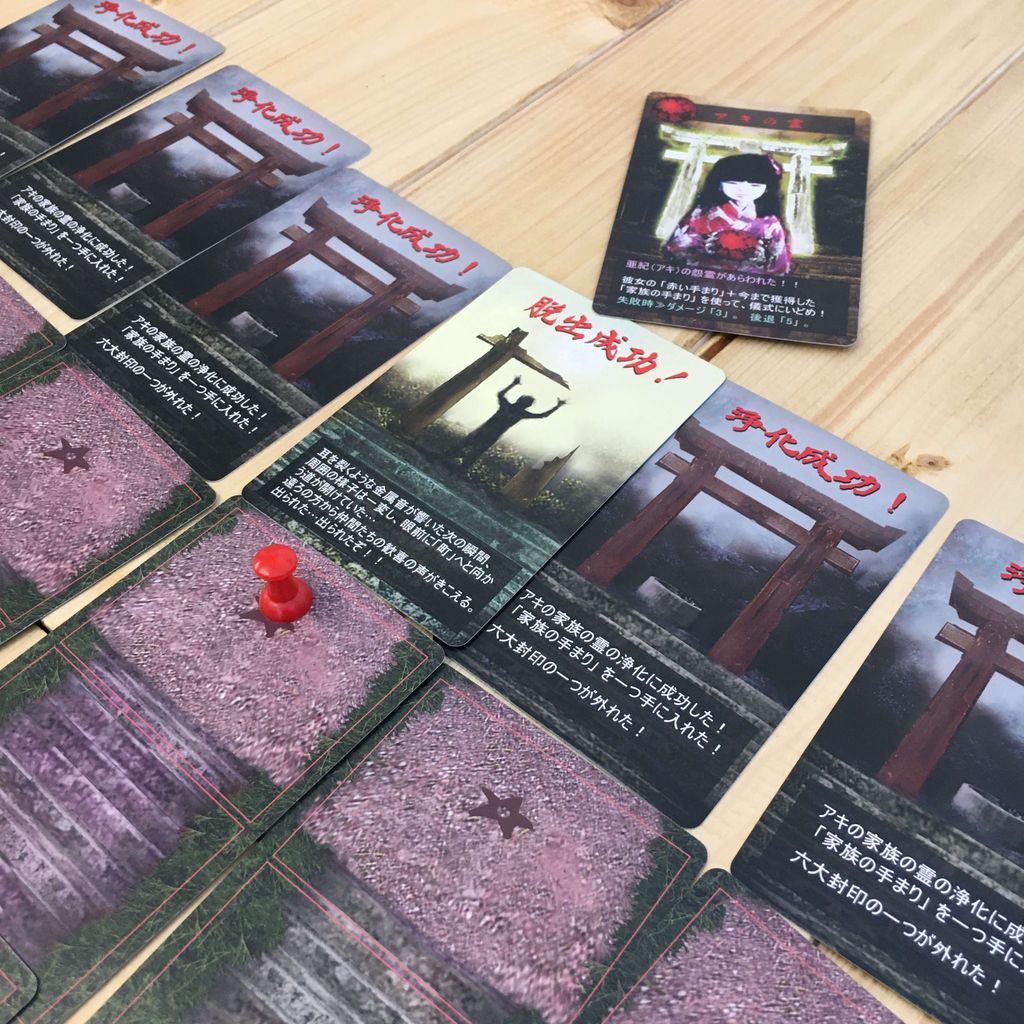 サイコロを振ってトリイまでたどり着いたら霊を呼ぶ呪文を唱えてカードを引きます。霊が現れたら『手まりの儀式』を行い、成功すれば浄化。