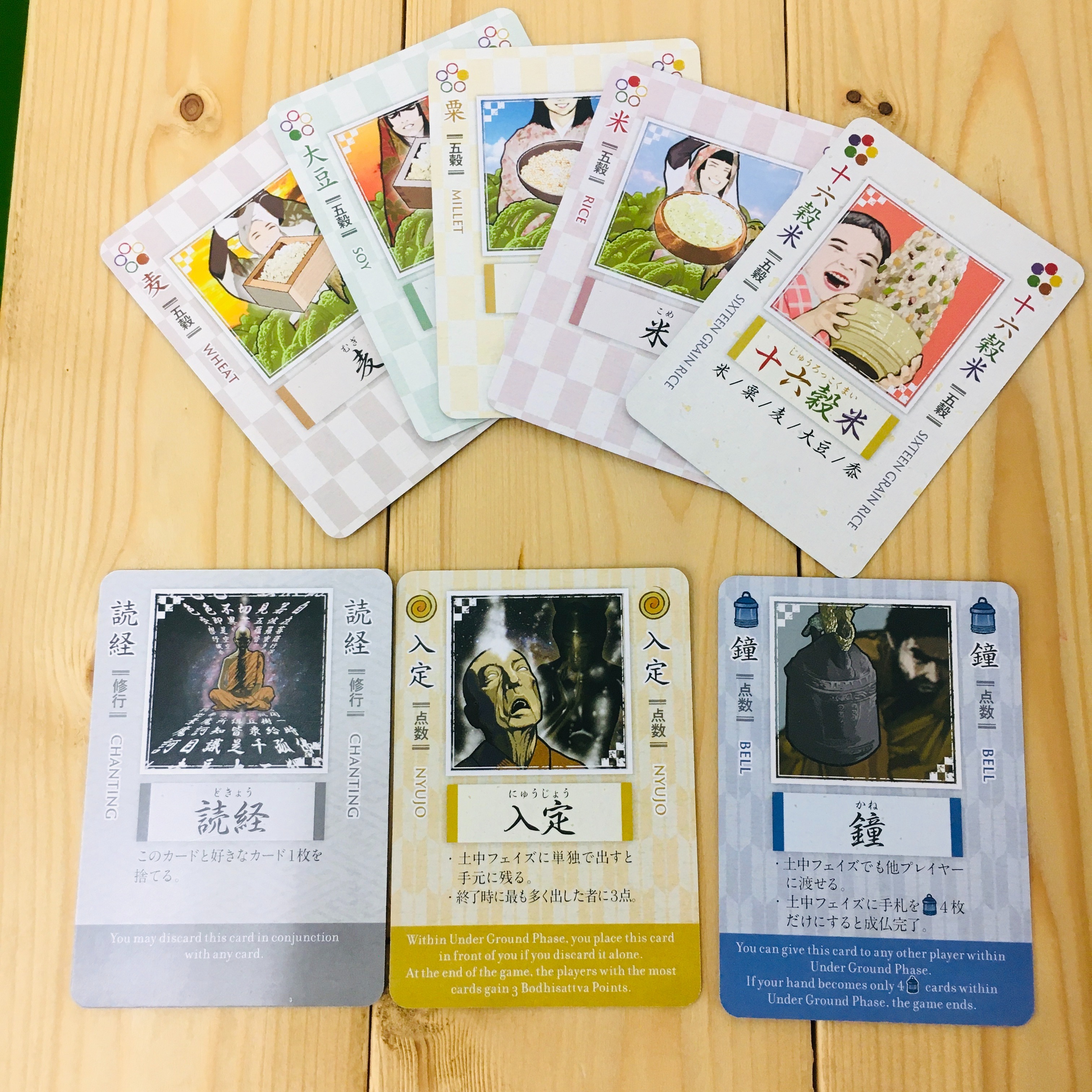最初に成仏した人が勝ちではなく、「菩薩点」という得点を多く手に入れたプレイヤーの勝利。最初にフェイズを終えた、瞑想をたくさんした、など菩薩点をもらえるアクションがいくつかあります。