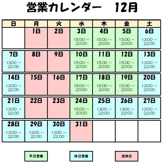 ※不定休ですが、「月曜日と火曜日」をメインでお休みにしております。