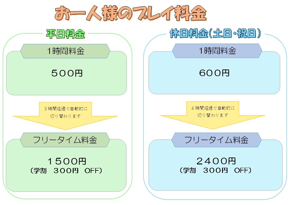 ※小学生以下のお客様は『注意事項』をよく読み、保護者同伴でご来店くださいませ。