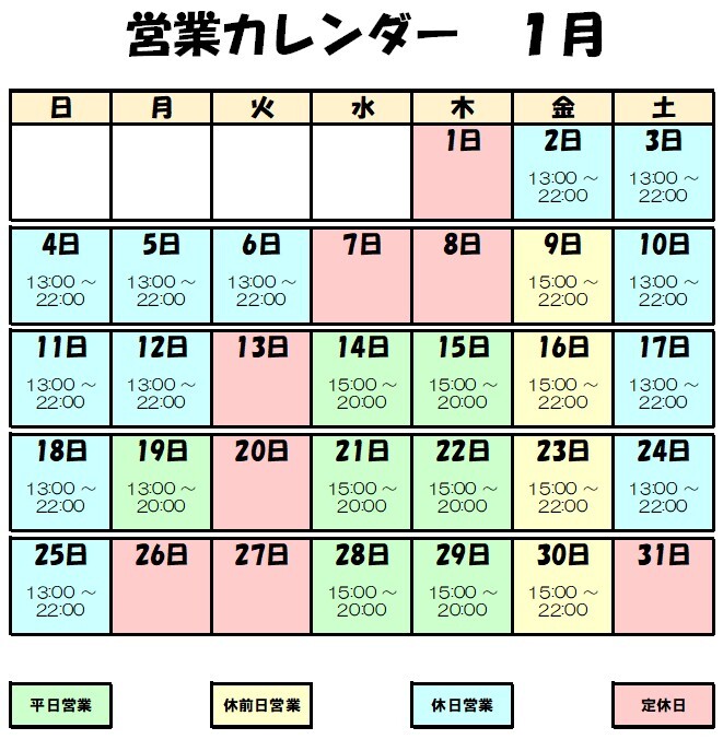・2026年1月の『営業カレンダー』を更新しました。