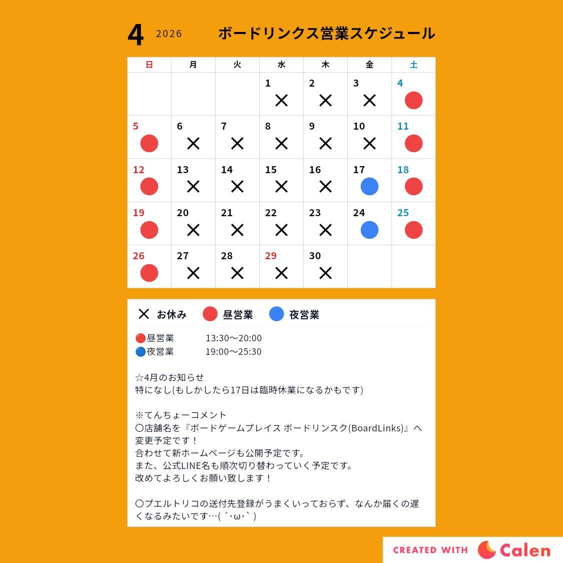2月からしばらくの間、(金)営業は縮小し、毎週土日営業が基本となります。ご了承ください。