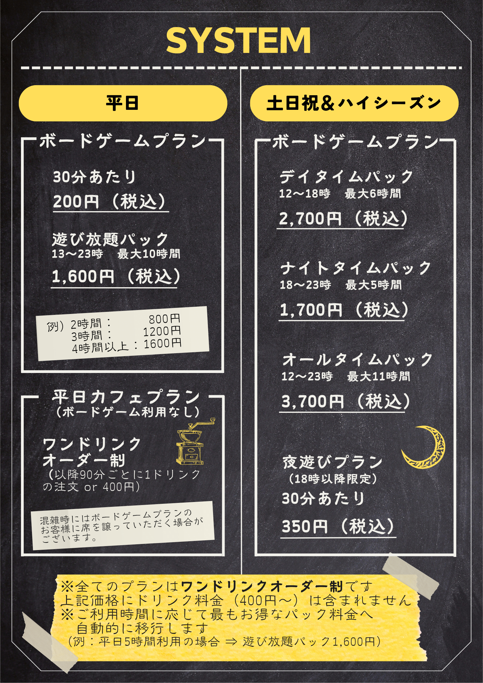 土日祝・ハイシーズンは時間帯ごとのパック料金です。