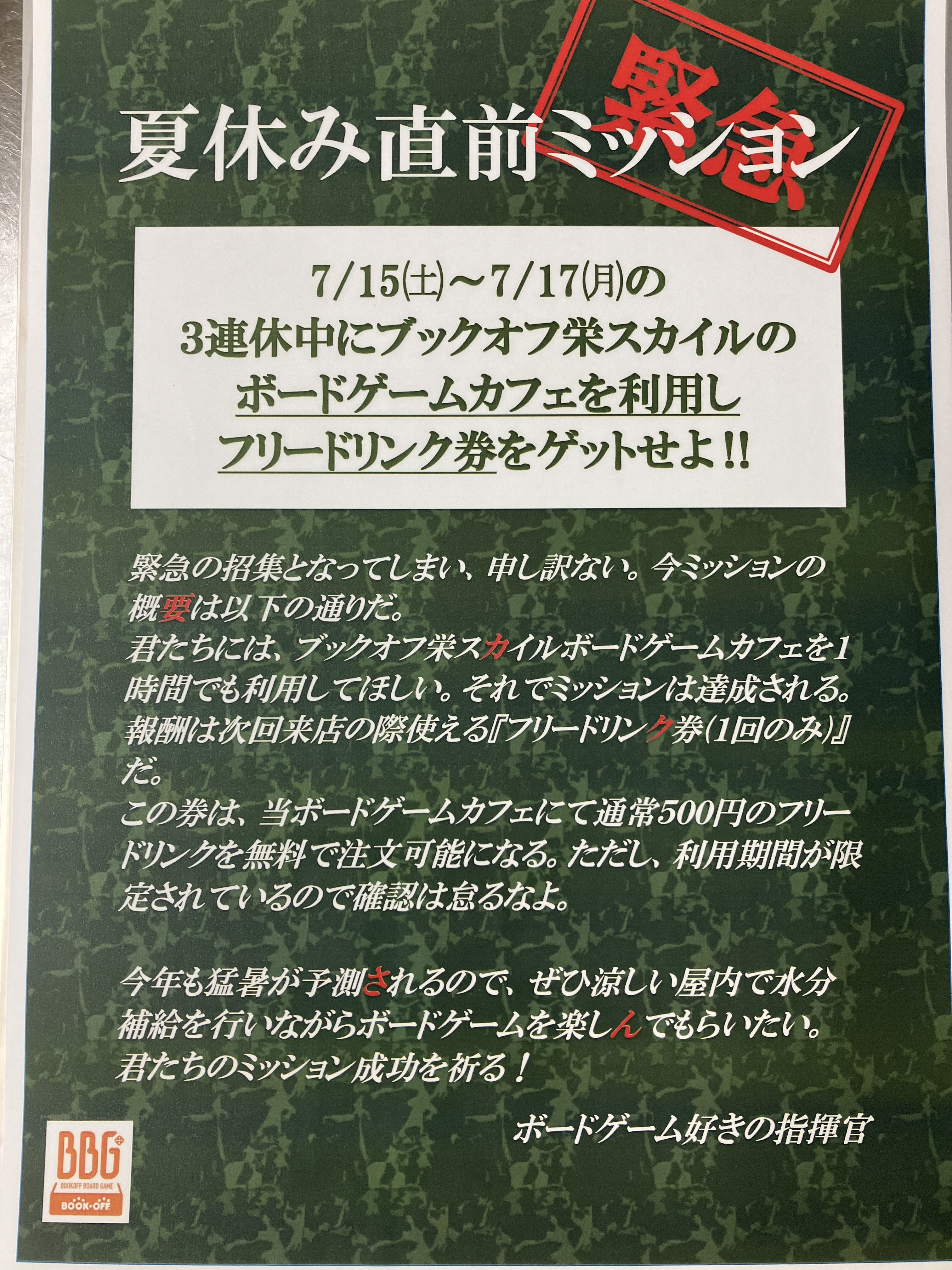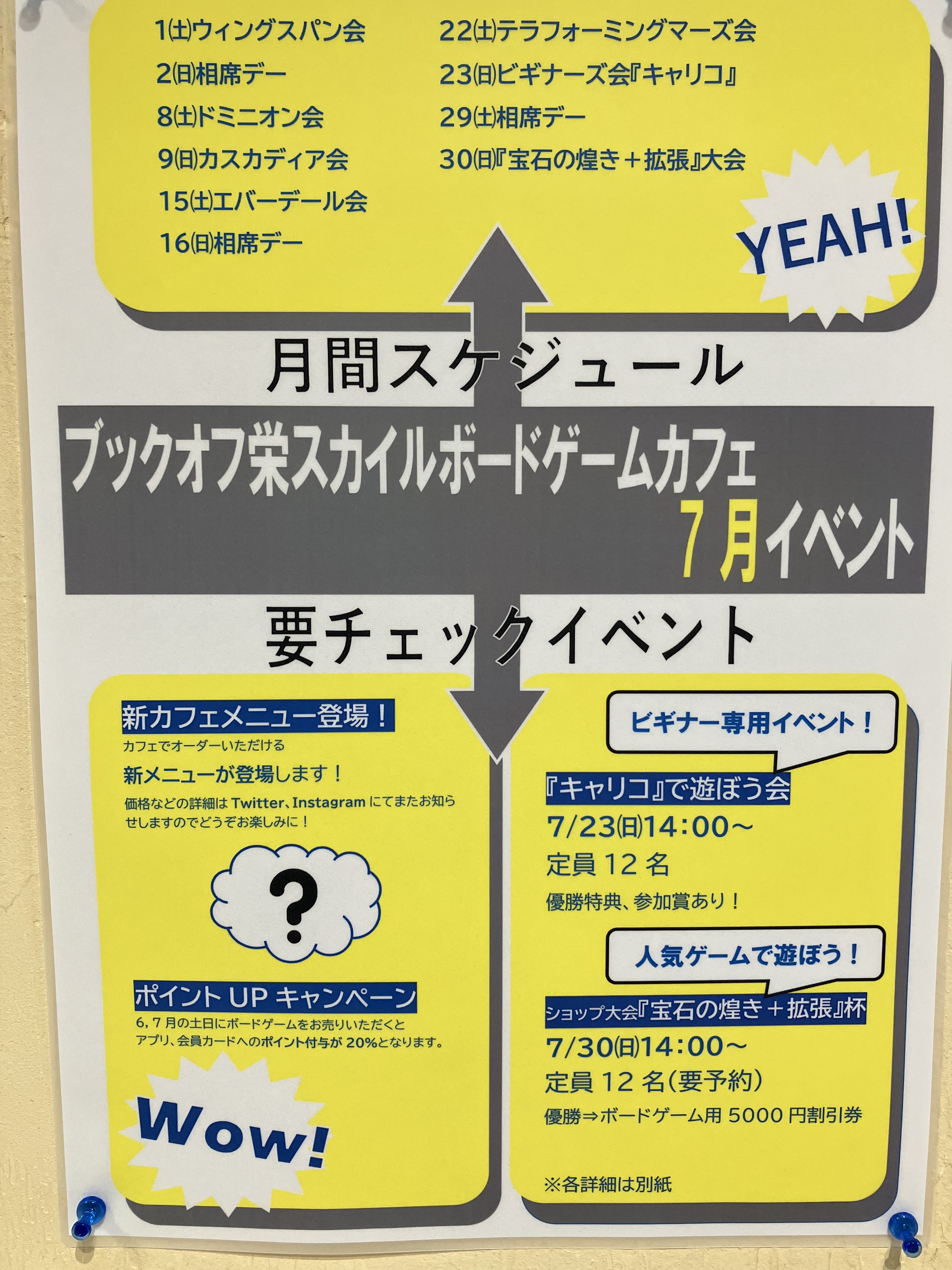 7月もブックオフ栄スカイル店ボードゲームカフェをよろしくお願い致します。