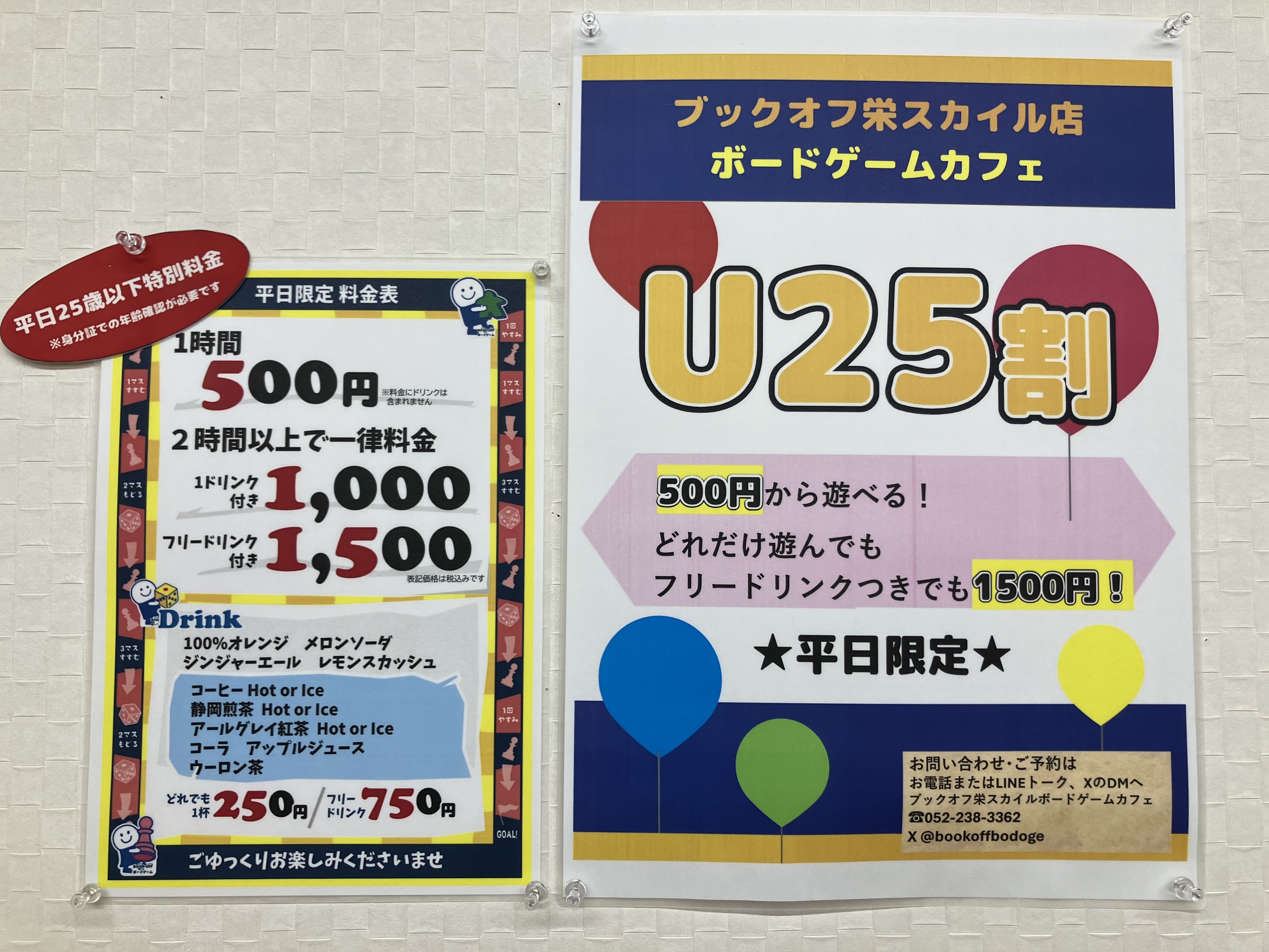 - 8ヶ月前2025年06月01日 14時14分頃6月7月平日限定料金キャンペーン開催中❗️6/2〜7/31の平日にブックオフ栄スカイル店ボードゲームカフェのご利用がお安くなります❗️1時間ドリンク無し500円フリータイムワンドリンク1000円フリータイムフリードリンク1500円でカフェをご利用することができます‼️学生さんはさらにお得!キャンペーン期間中、学生証をご提示いただいた場...98ページビュー