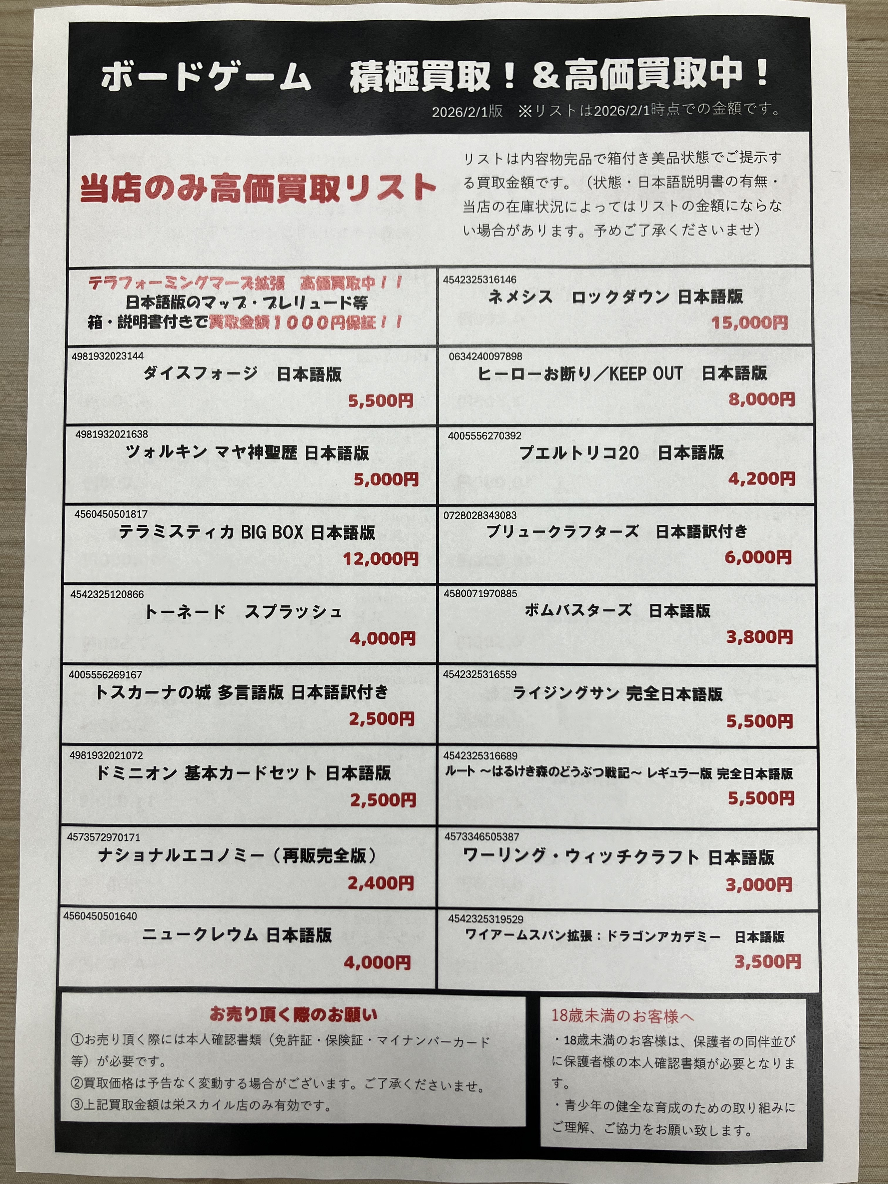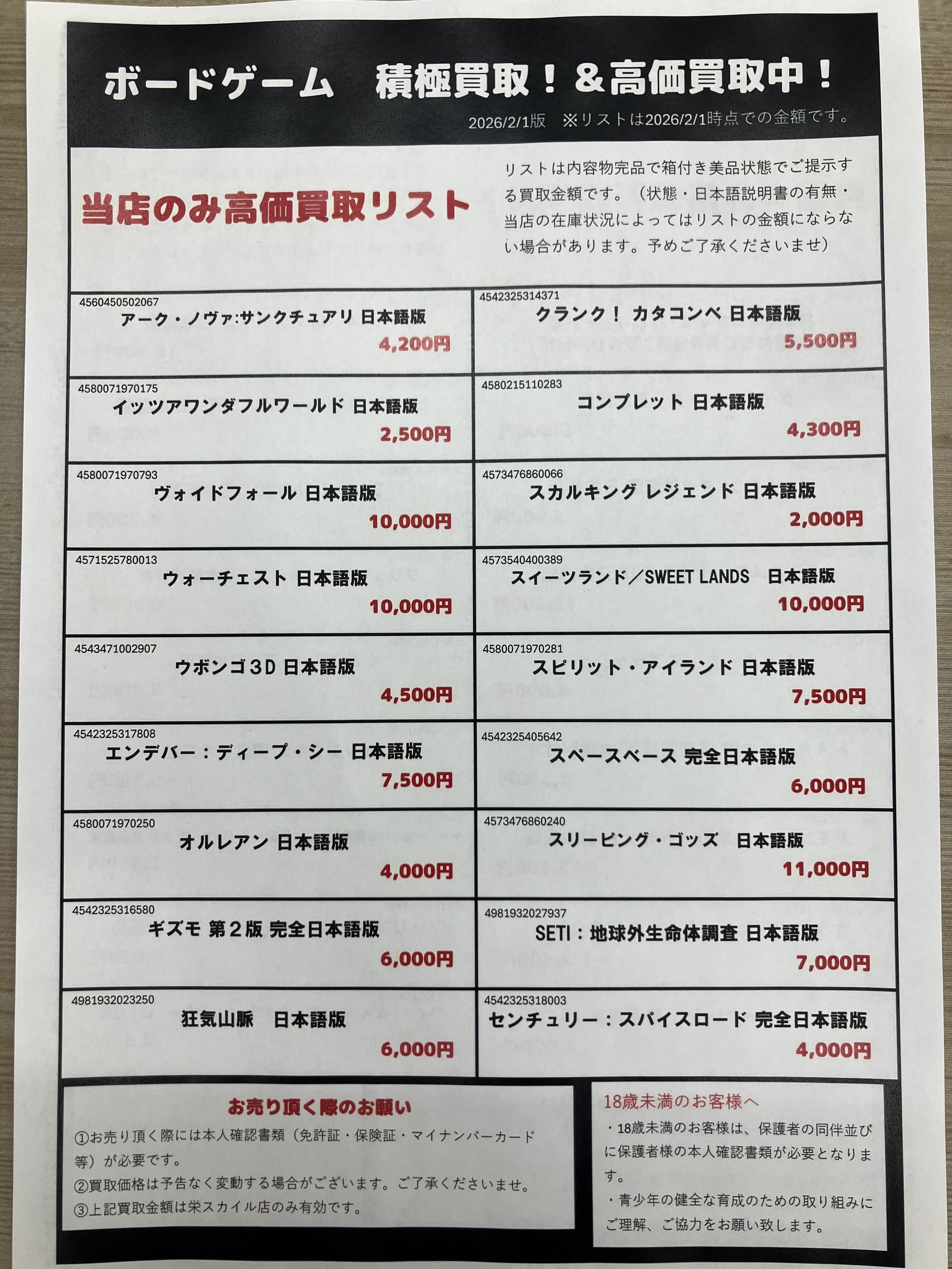 お売りいただけるボードゲームお待ちしております!