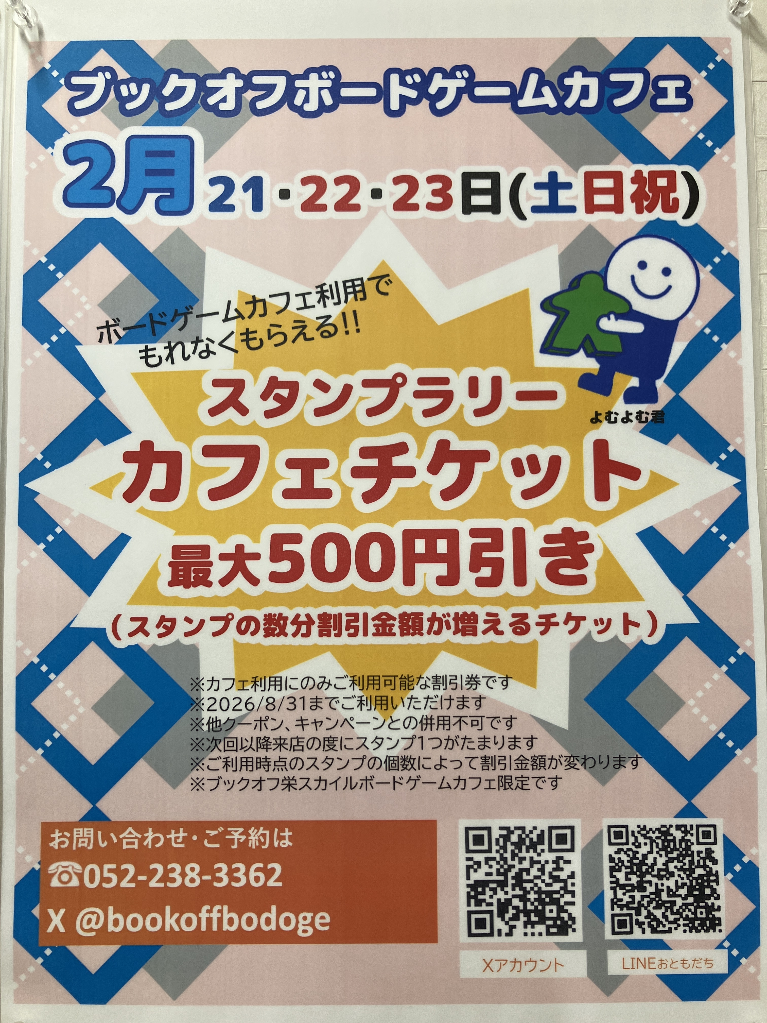 - 約1ヶ月前2026年01月21日 13時48分頃ご心配おかけしました!変わらず営業しています!BOOKOFF栄スカイル店ボードゲームカフェ変わらず営業中です!更新が止まってしまってた理由はちょっと恥ずかしすぎるので、このブログ見てカフェにお越しのお客様は直接スタッフにお尋ねくださいw何はともあれ、閉店などはしてません。これからはきちんと更新していきますので今後もよろしくお願い致します🙇...64ページビュー