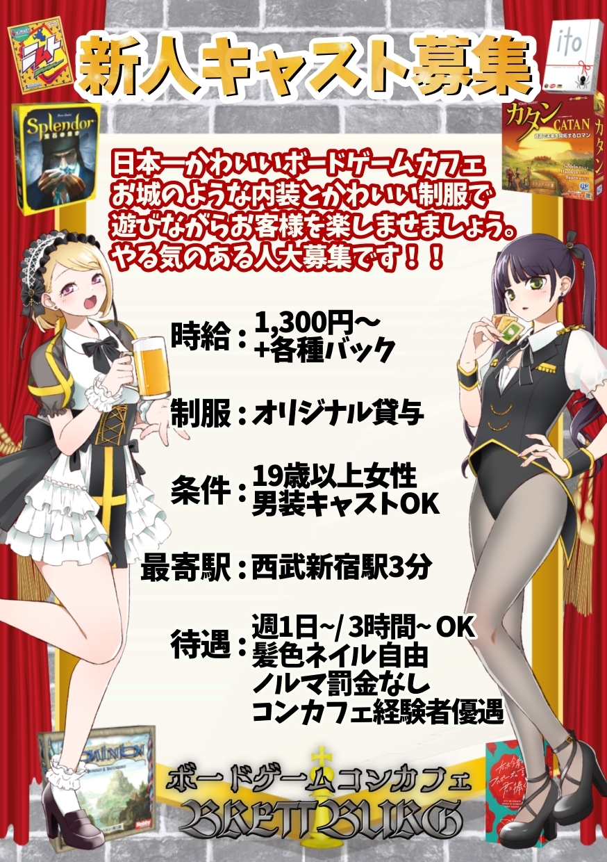 新宿のボードゲームコンカフェBRETTBURGです!あまりブログが更新できずすみません。。。今月から新人キャストがたくさん増えましたので紹介したいと思い久しぶりに書きました!現在新人ちゃんに会って仲良くなろう企画『新人スタンプラリー』を開催中です。みんな可愛い上にかなりのボードゲーマーです!コ...