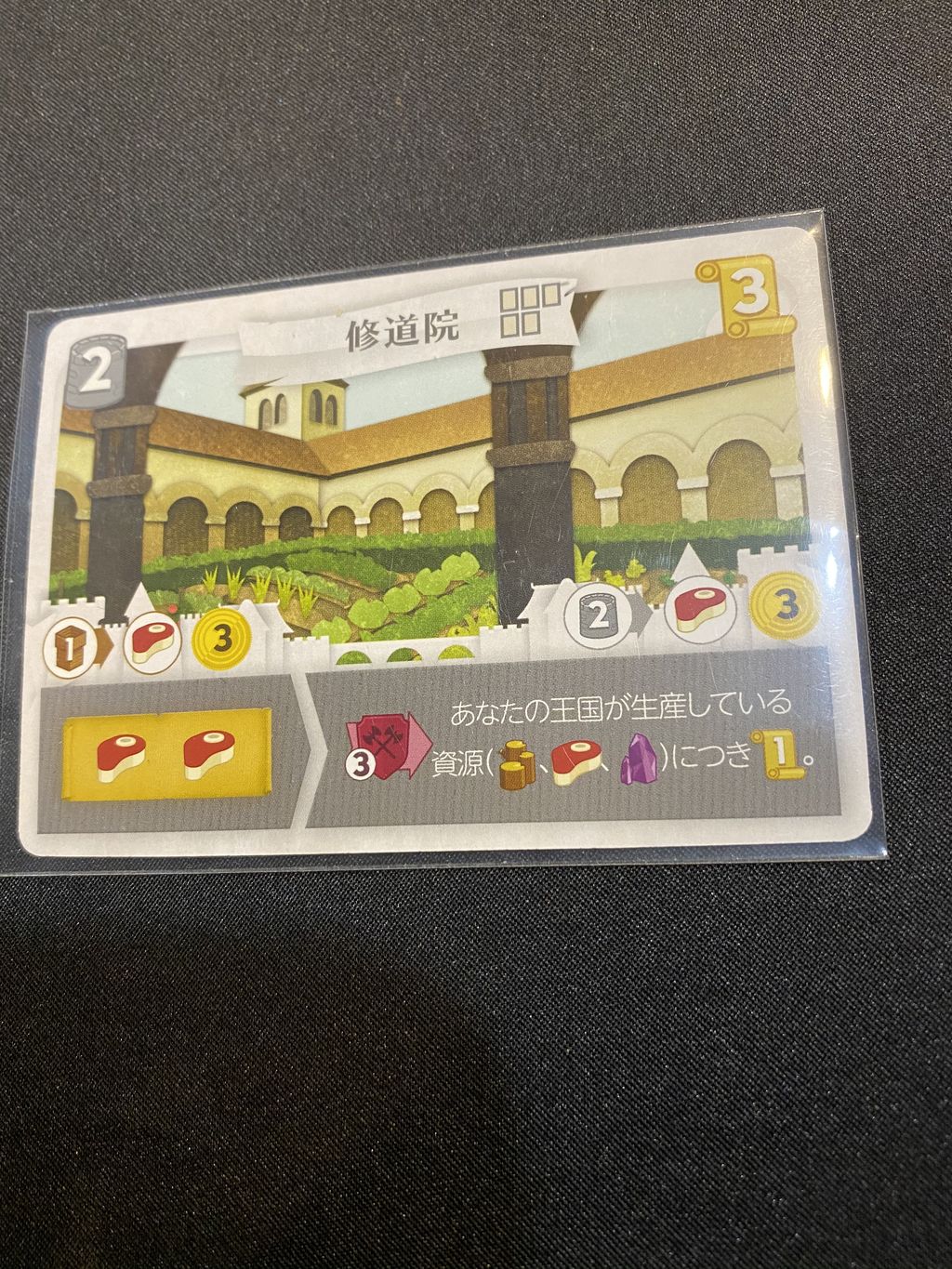 拡張版では、修道院レベル1、墓所レベル2から肉が2つ出るため、相性がとても良いです。