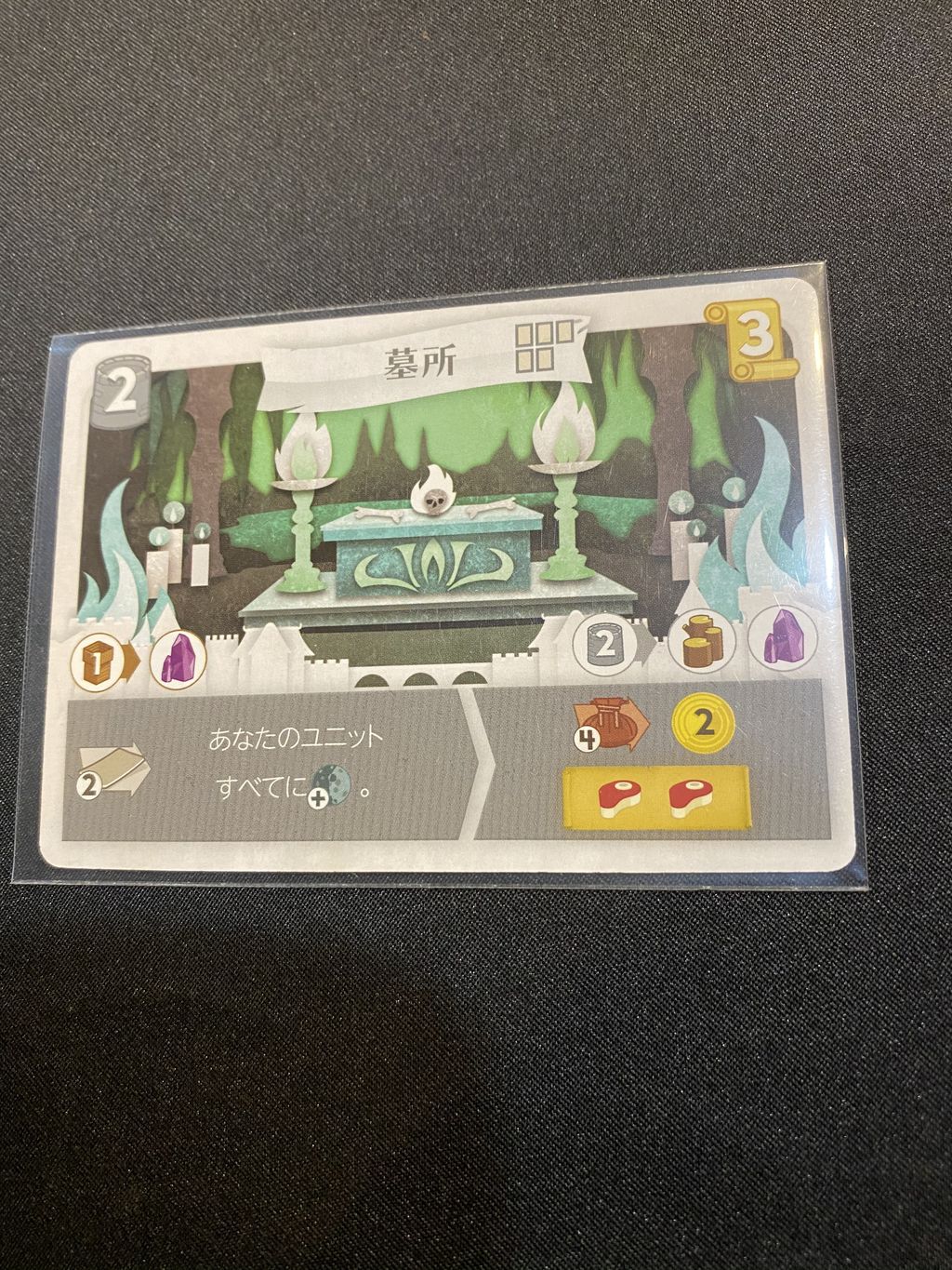 また、配置しているユニットに乗っている経年カウンターの数だけ勝利点を得ることが出来るため、墓所との相性がとても良いです。