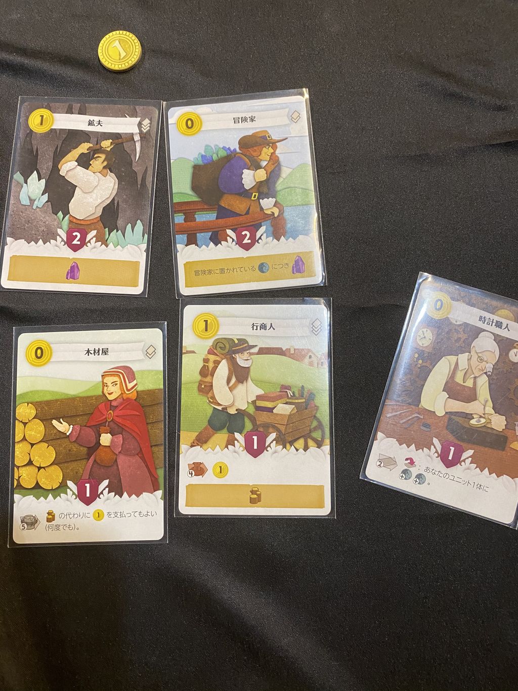 配置は、鉱夫、冒険家、木材屋、行商人となりました。