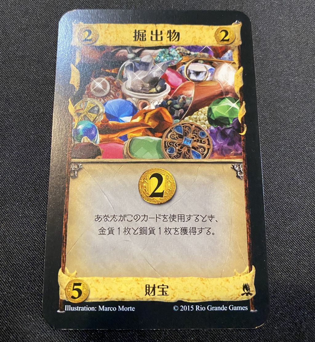 掘出し物は、銅貨と金貨を獲得する2金を生み出すカードです。
