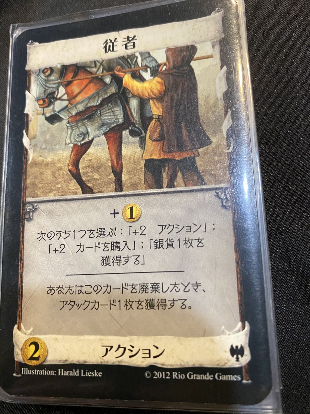 1アクションと購入のついた廃棄カードです。4コスト相当の性能があるカードだと思われます。