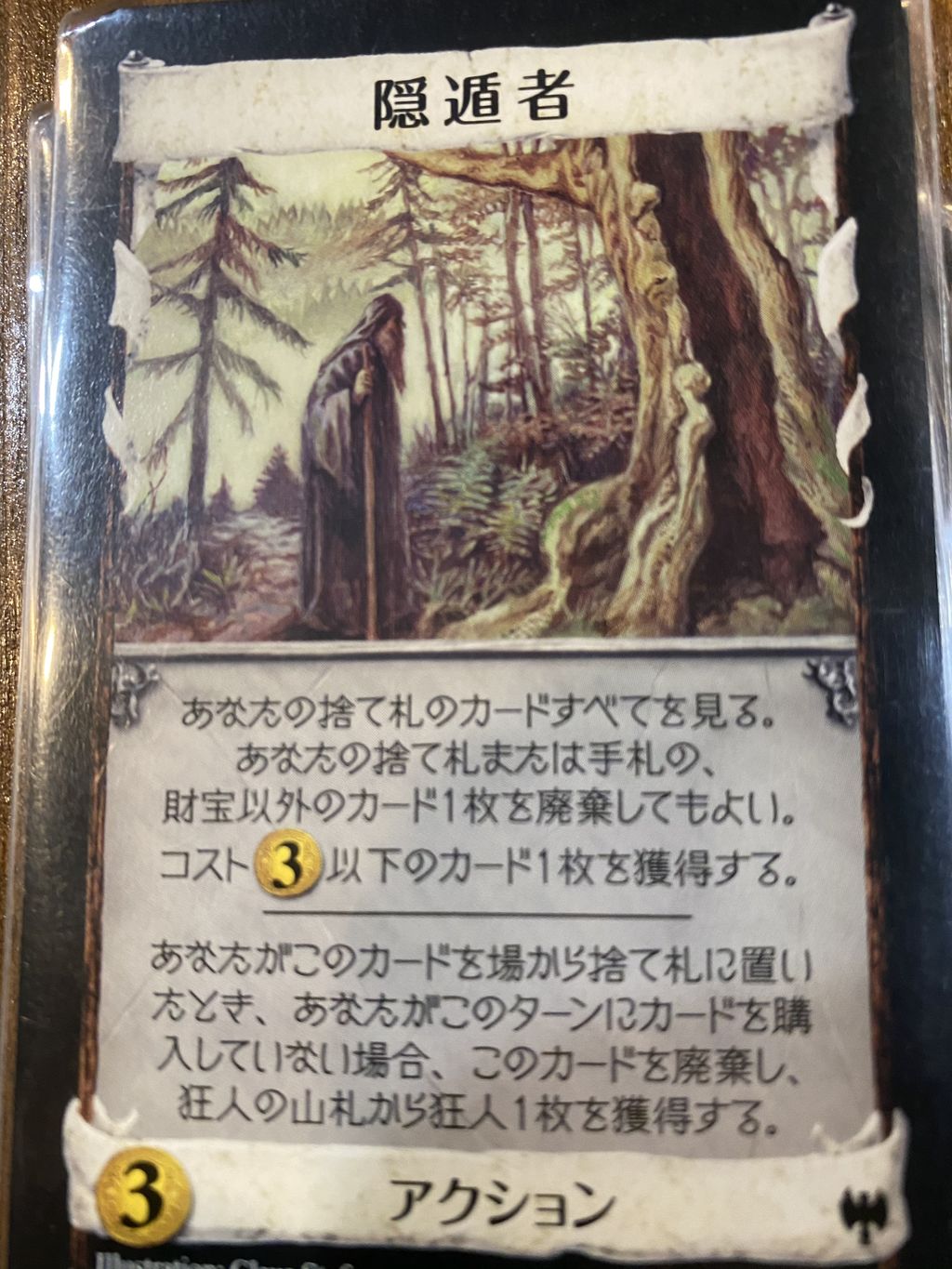 3コストまでの獲得、財宝以外のカードを捨て札と手札から選んで廃棄出来ることと、購入をしなければ、狂人に変わることから非常に使いやすいカードです。