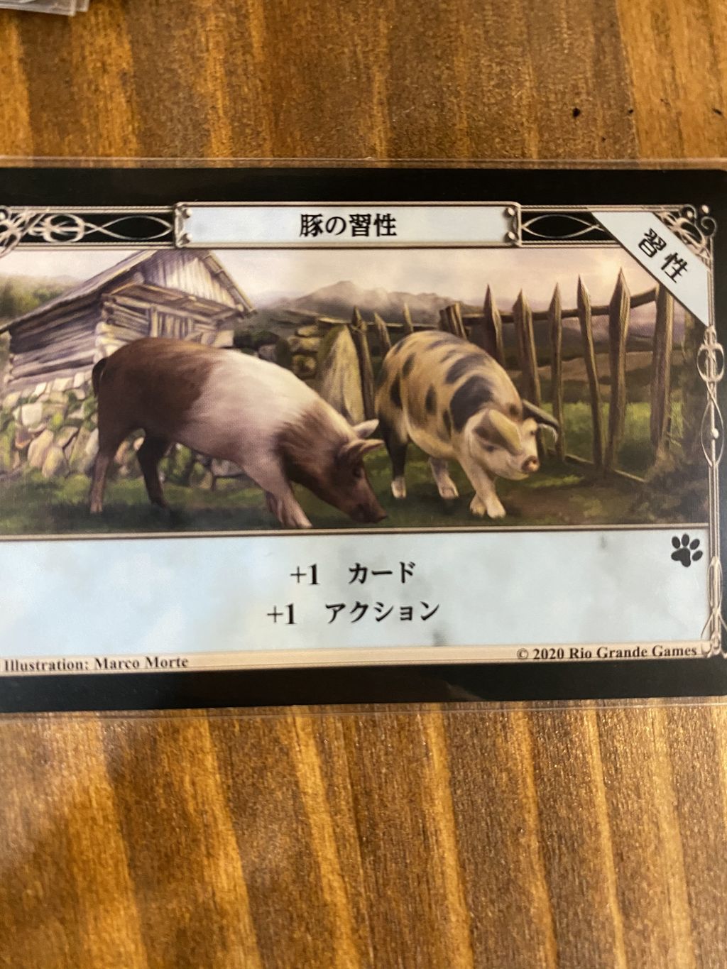 今回は、アクションカードを1ドロー、1アクションに変化させることができる豚の習性を使用します。