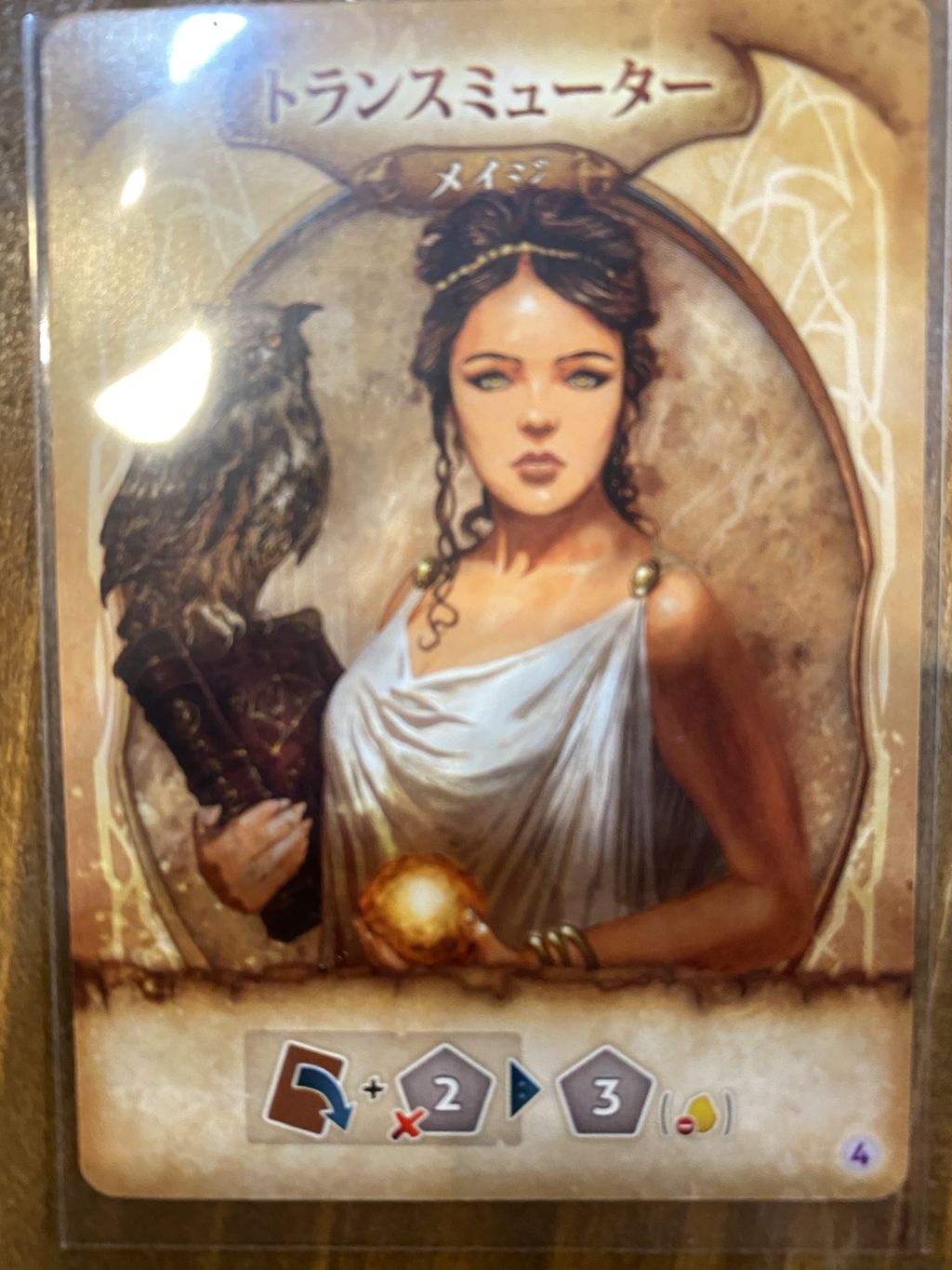タップして、エッセンスを1つ捨てると1ドロー出来ます。1ドローしたカードを捨て札にすると、金を獲得できます。
