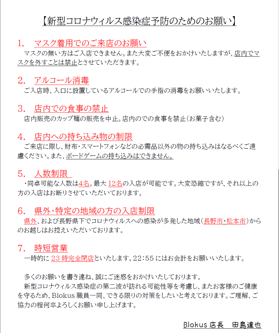 予防のお願いの内容がコロコロ変わりますことをお詫び申し上げます。