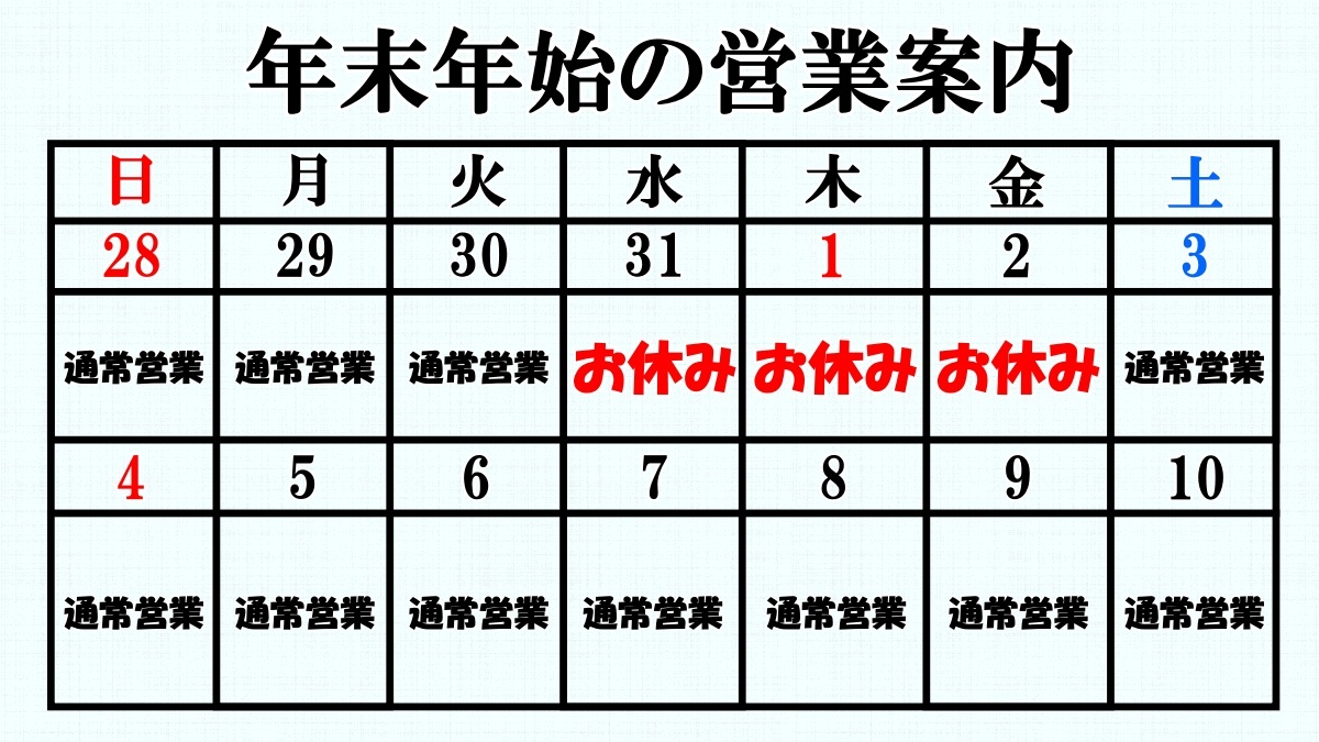 - 1日前2025年12月13日 14時18分頃年末年始の営業について年末年始の営業案内です!12/31〜1/2の期間はお休みいただきます 1/3から通常営業再開となりますので、ご了承ください 来年度もボードゲームカフェSplaをよろしくお願いいたします!2ページビュー