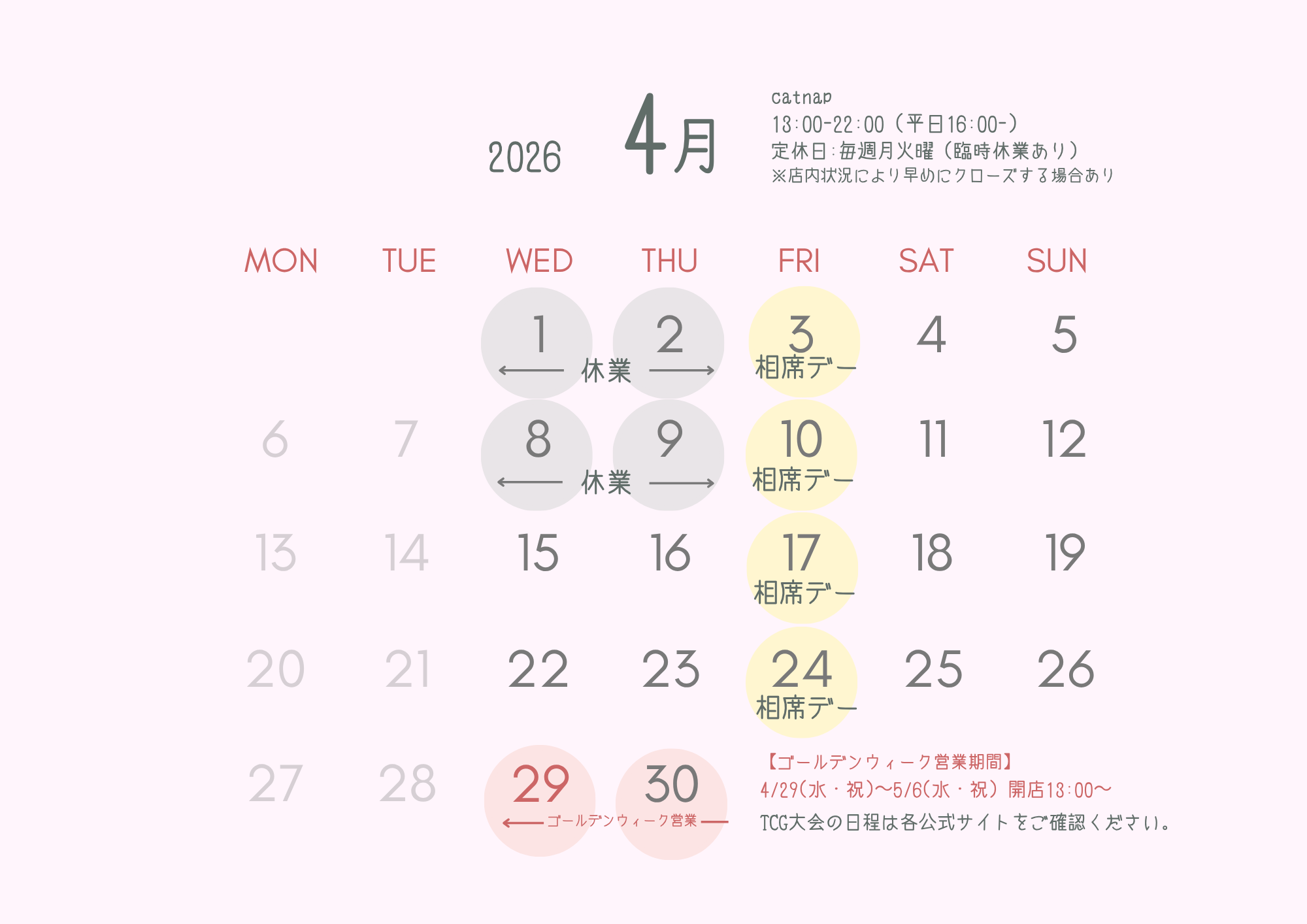 | 休日営業 | 13時00分~22時00分 |