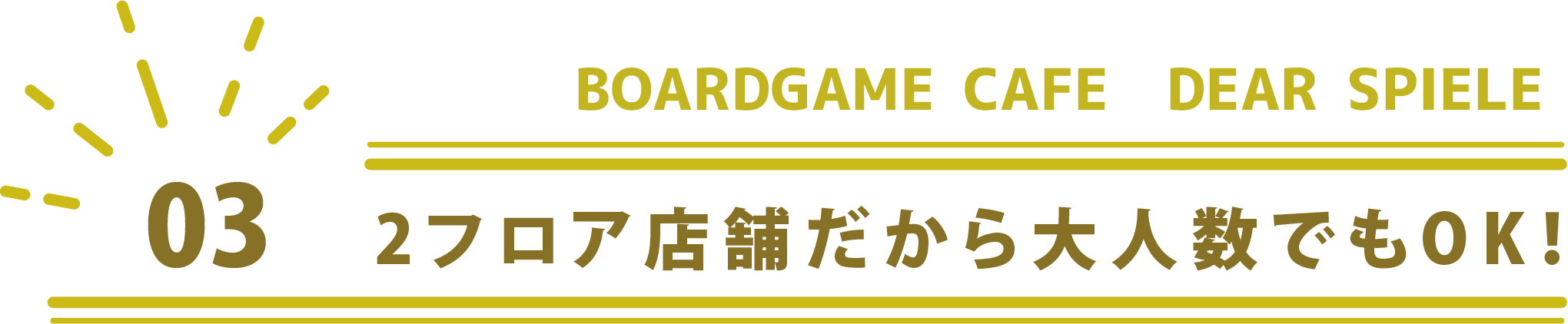 ボードゲームカフェ『ディアシュピール』は、お店が3階と4階の2フロアに分かれており、大きなテーブル席も3席あるため、7人以上の大人数でも1テーブルで遊べます!